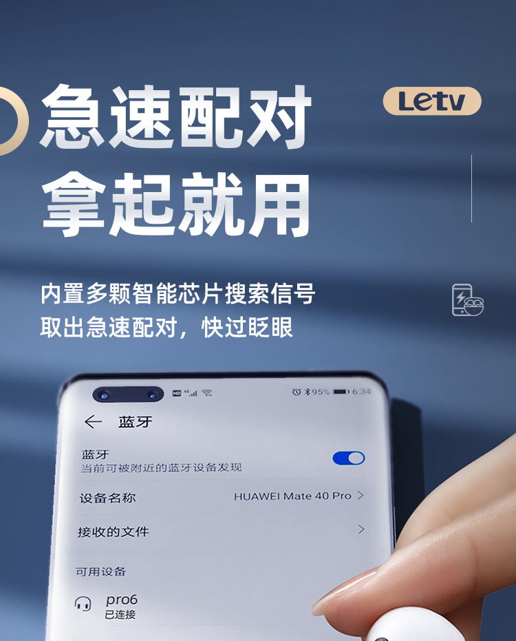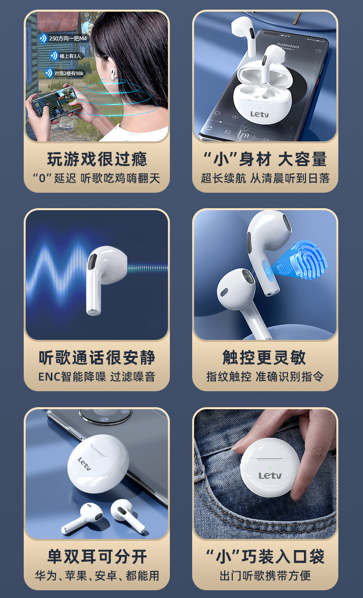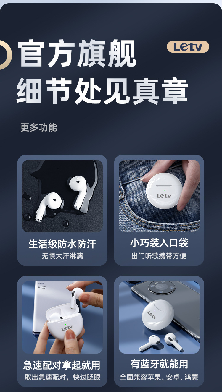 LeTV Letv wireless Bluetooth earphones with ultra long battery life, Pro6 noise cancelling semi in ear brand, authentic Huaqiangbei