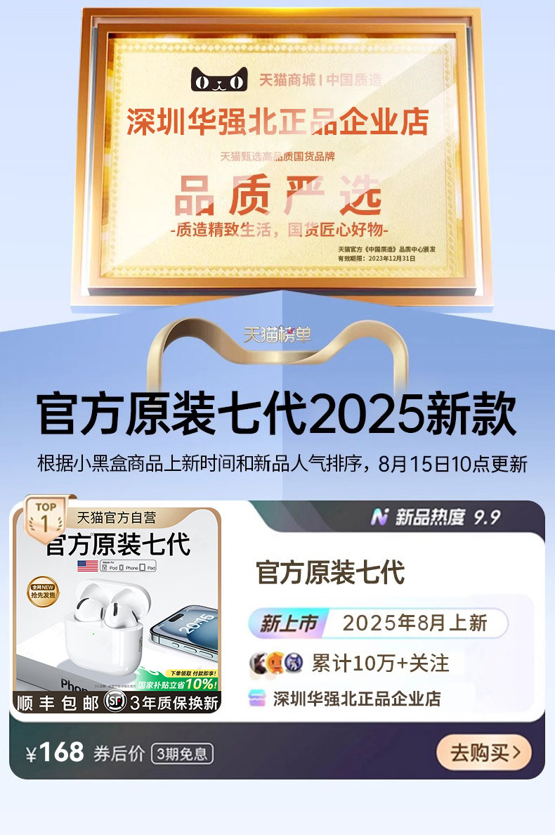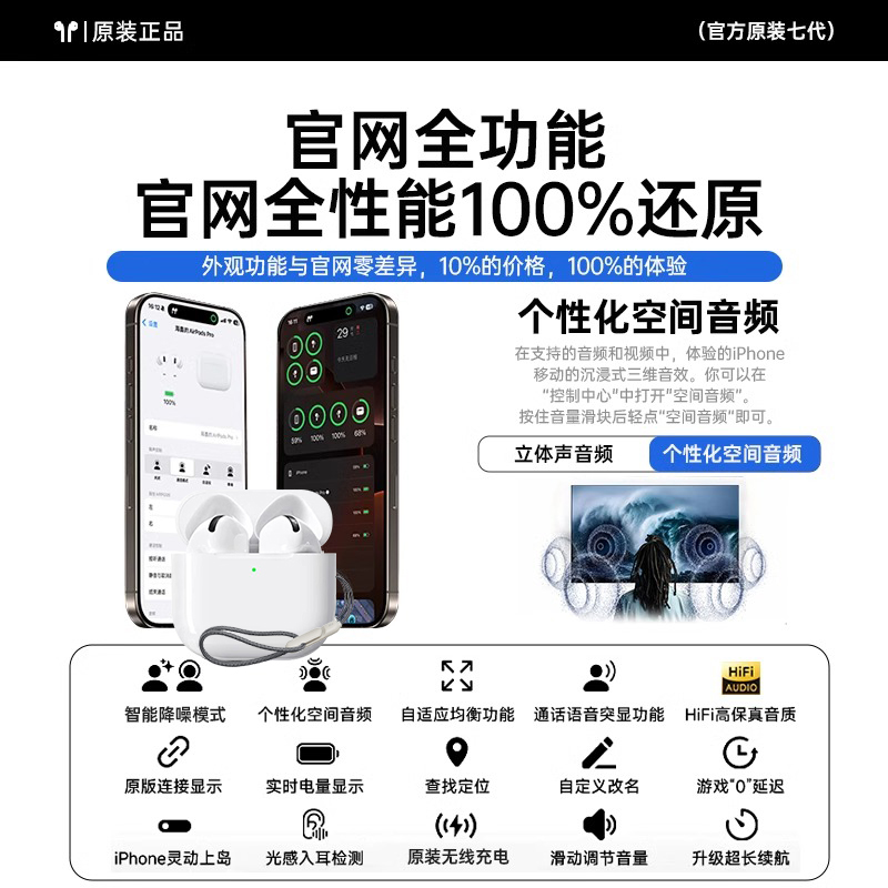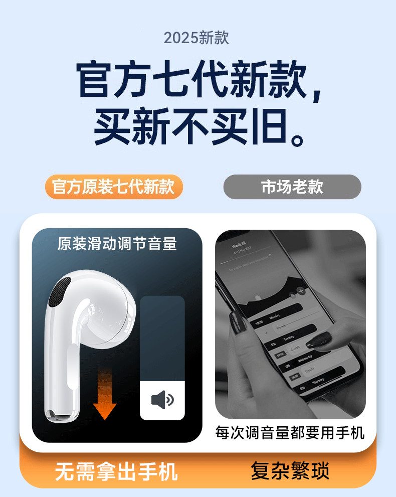 Huaqiang North Bluetooth Наушники 2025 Новые беспроводные наушники Bluetooth Тяжелый бас семь поколений шумоподавление трансграничные наушники Bluetooth