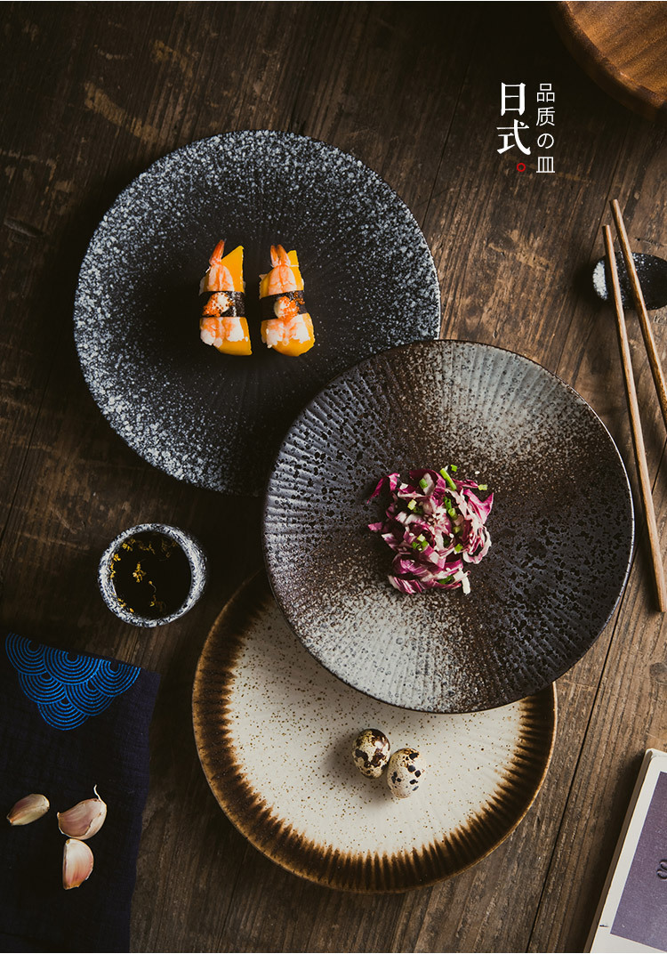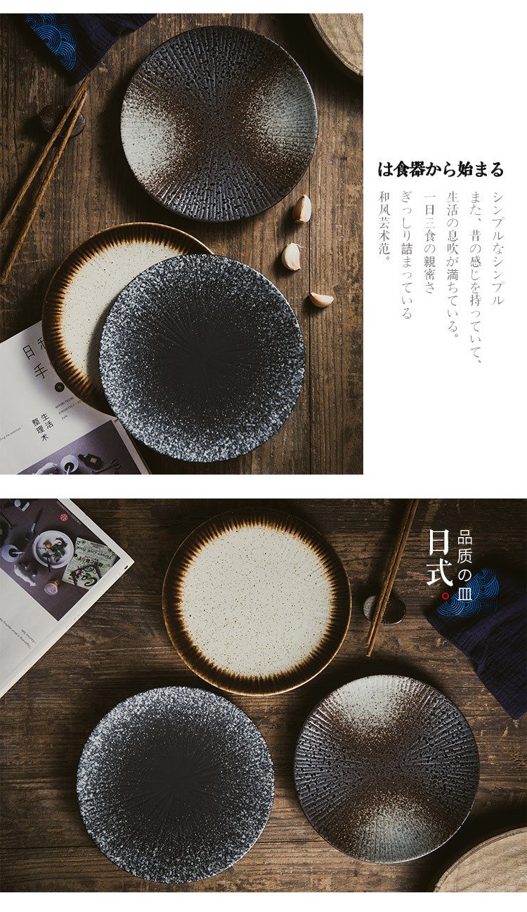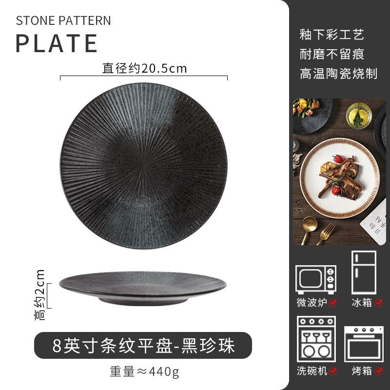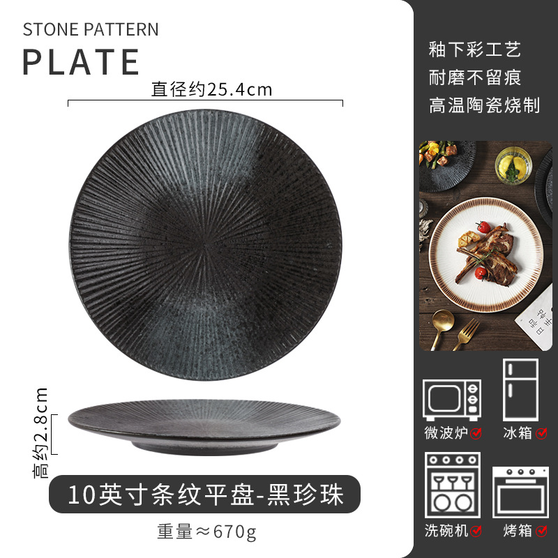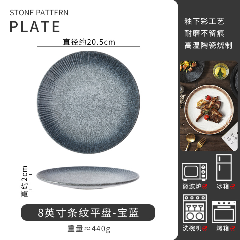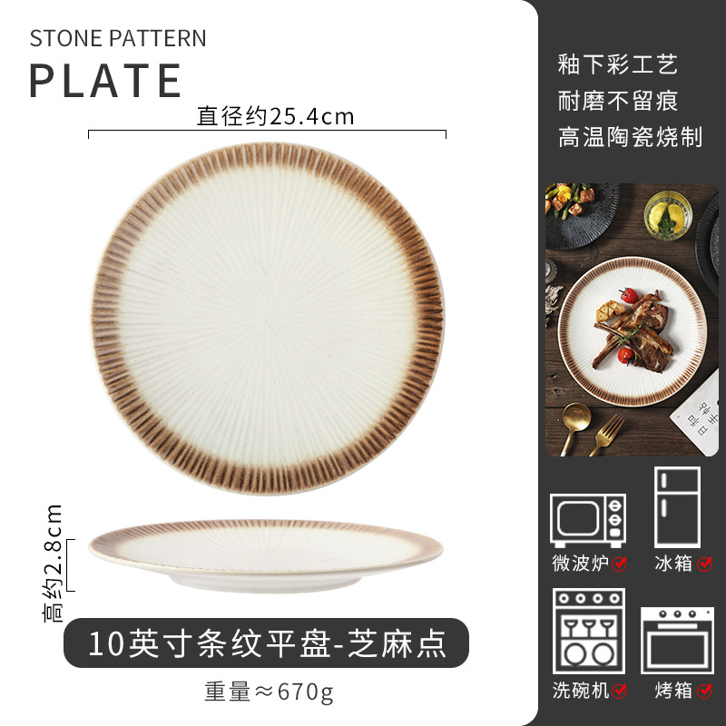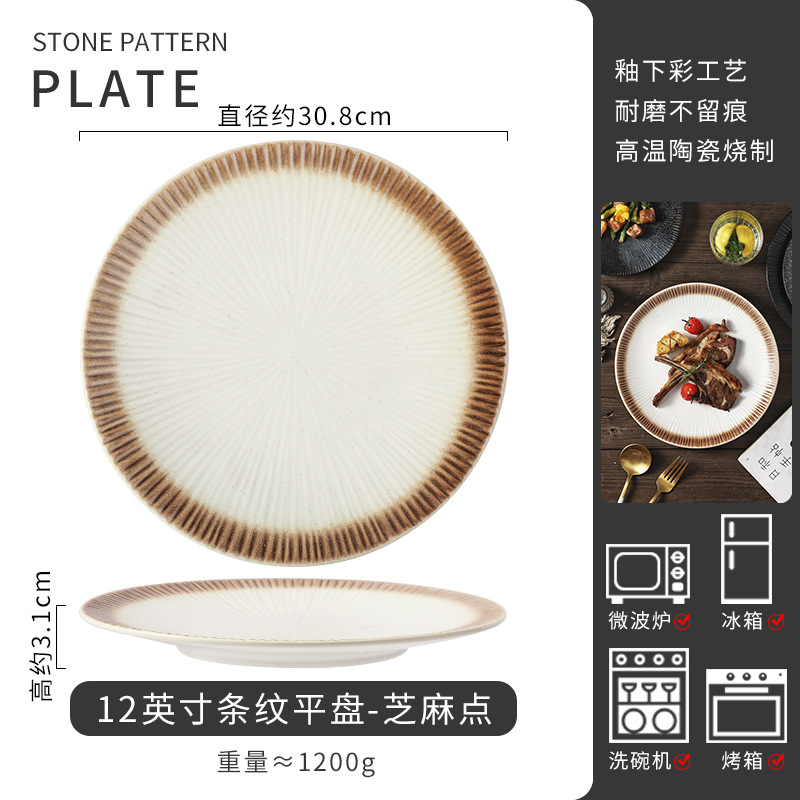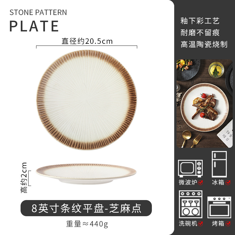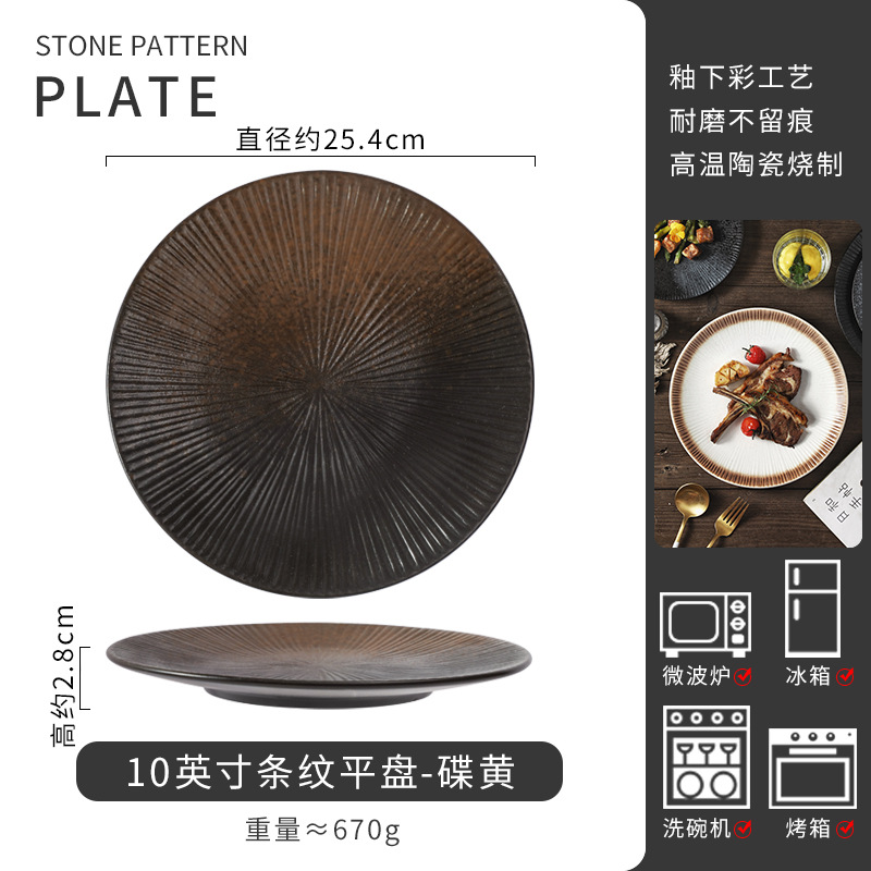Striped shallow plate Japanese ceramic plate Creative dining plate Home retro tableware Striped creative dining plate Breakfast plate