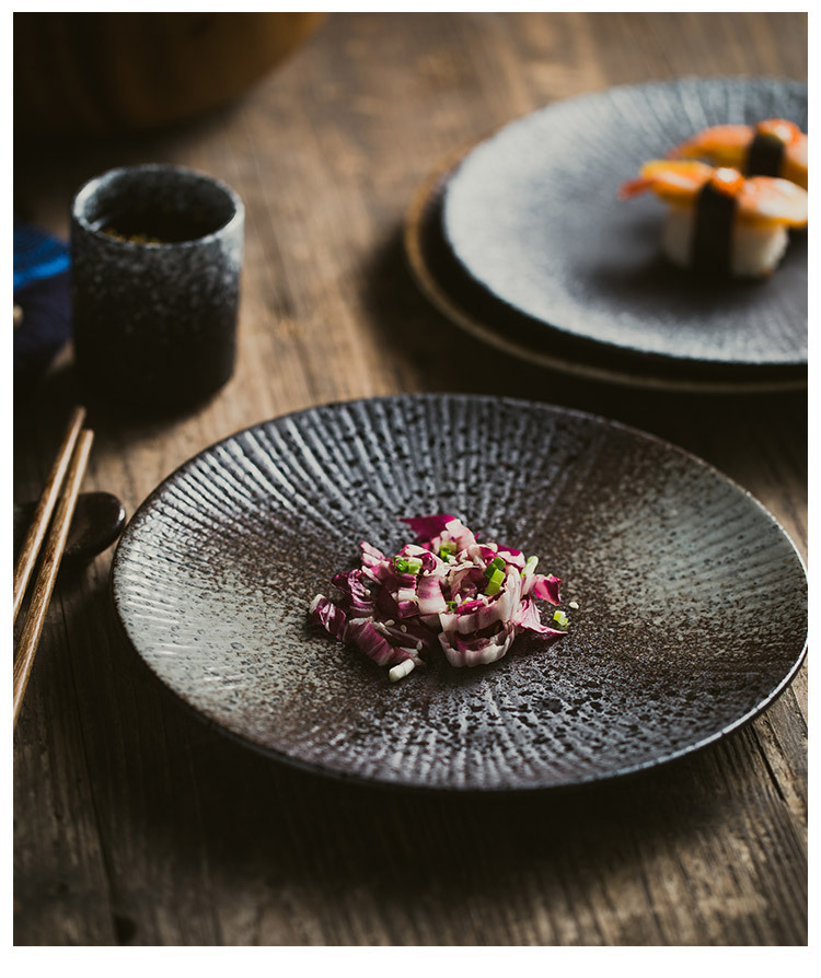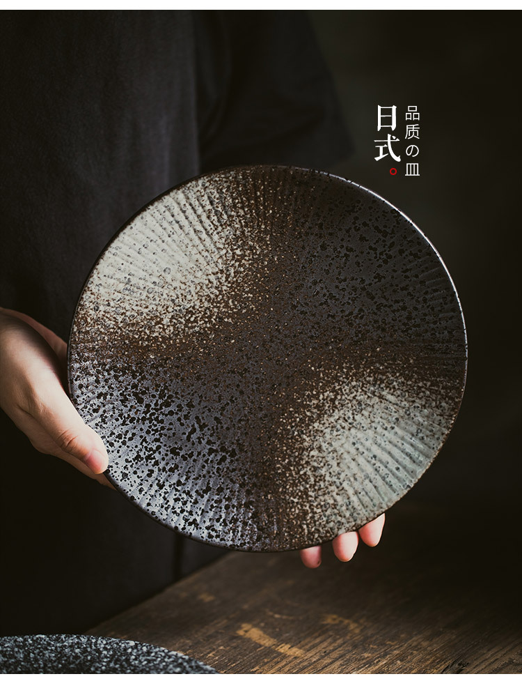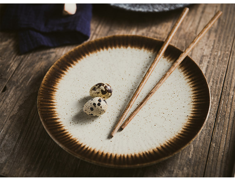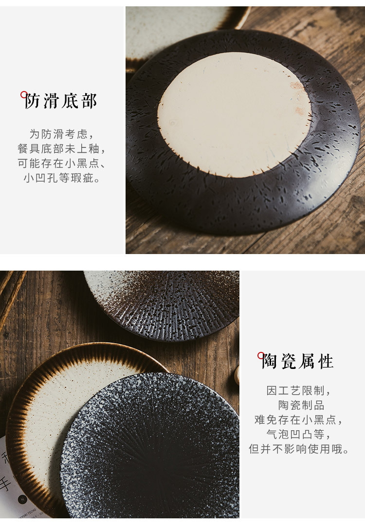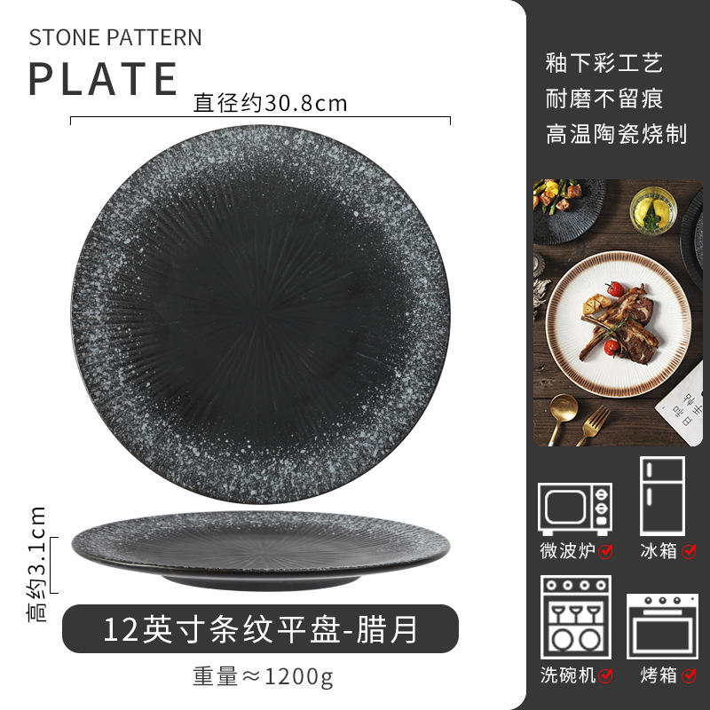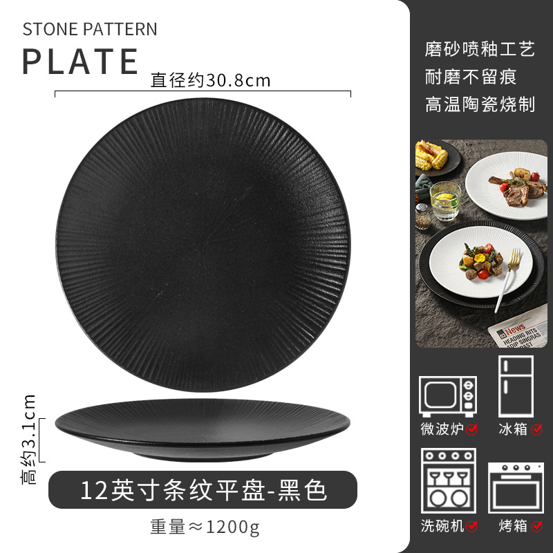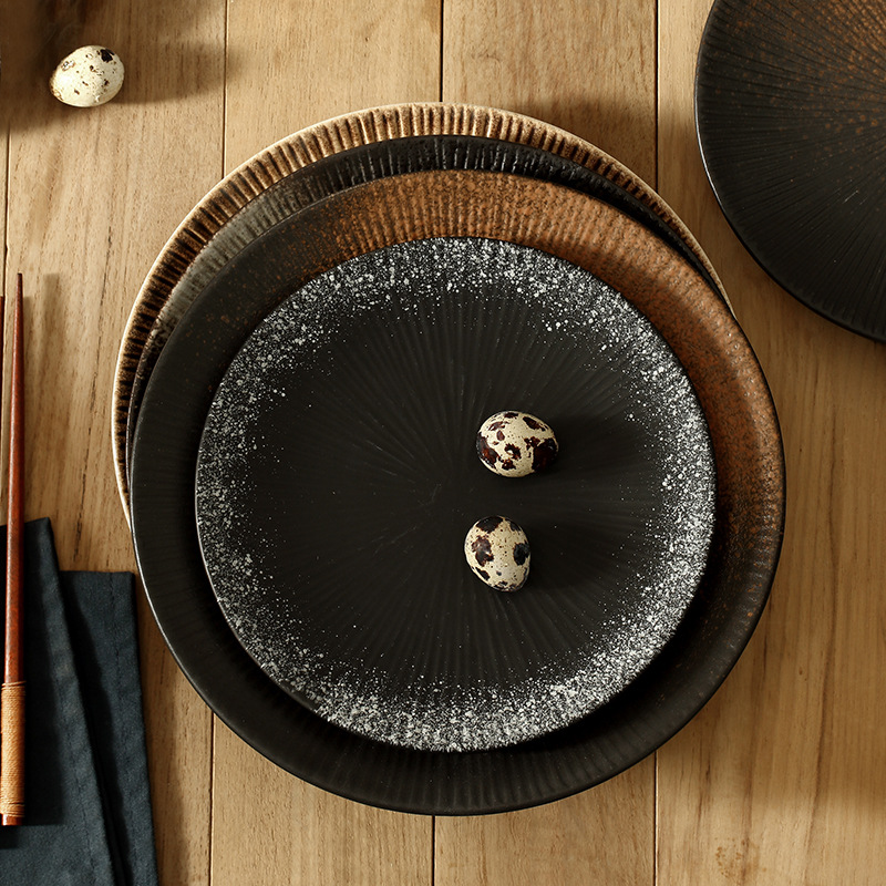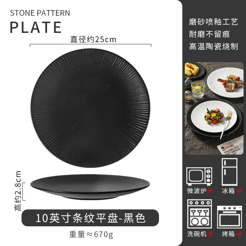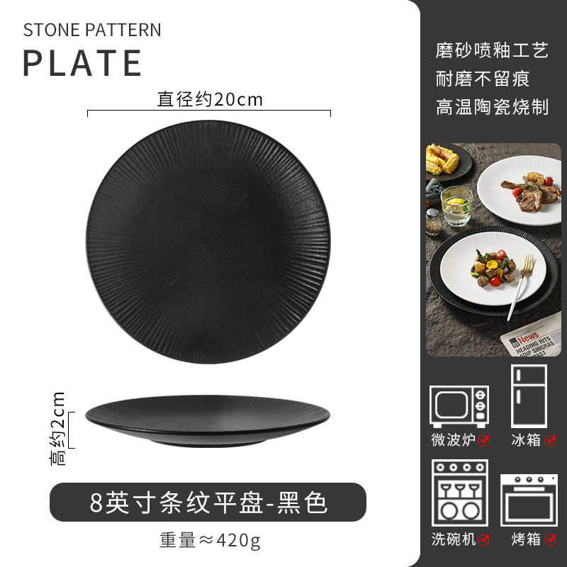 Striped shallow plate Japanese ceramic plate Creative dining plate Home retro tableware Striped creative dining plate Breakfast plate