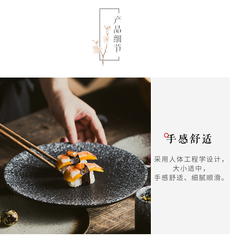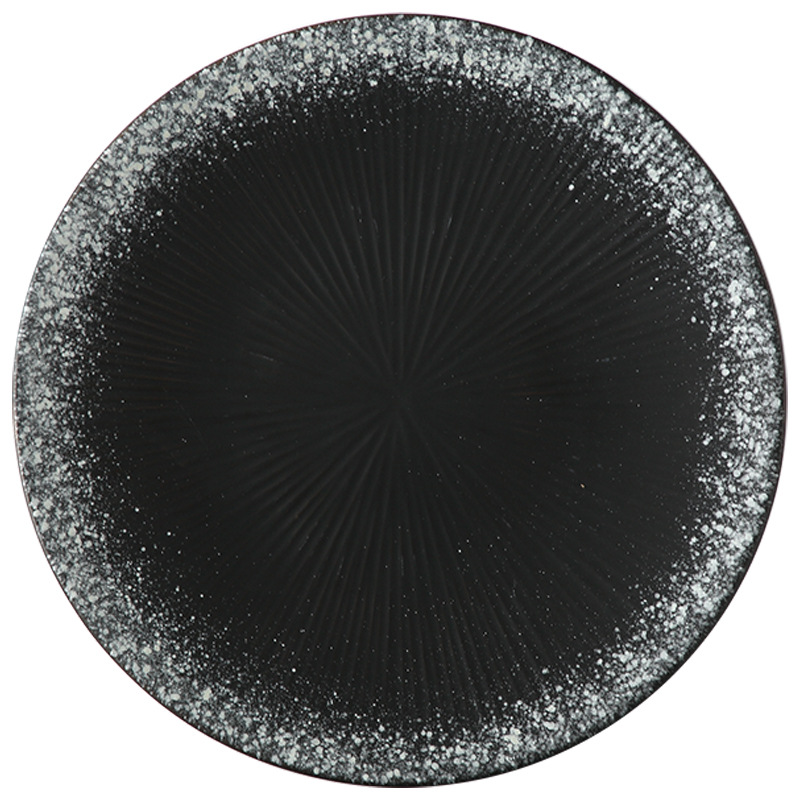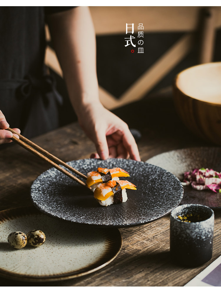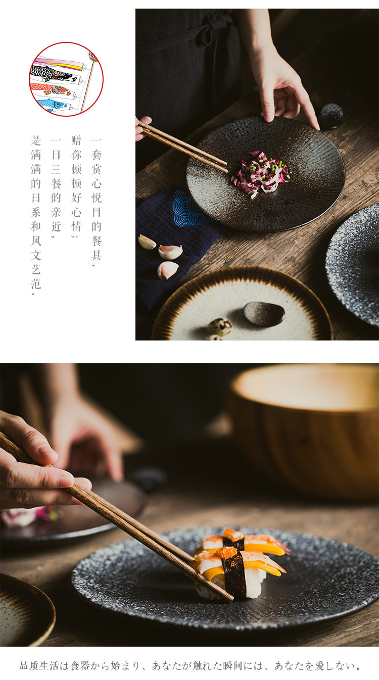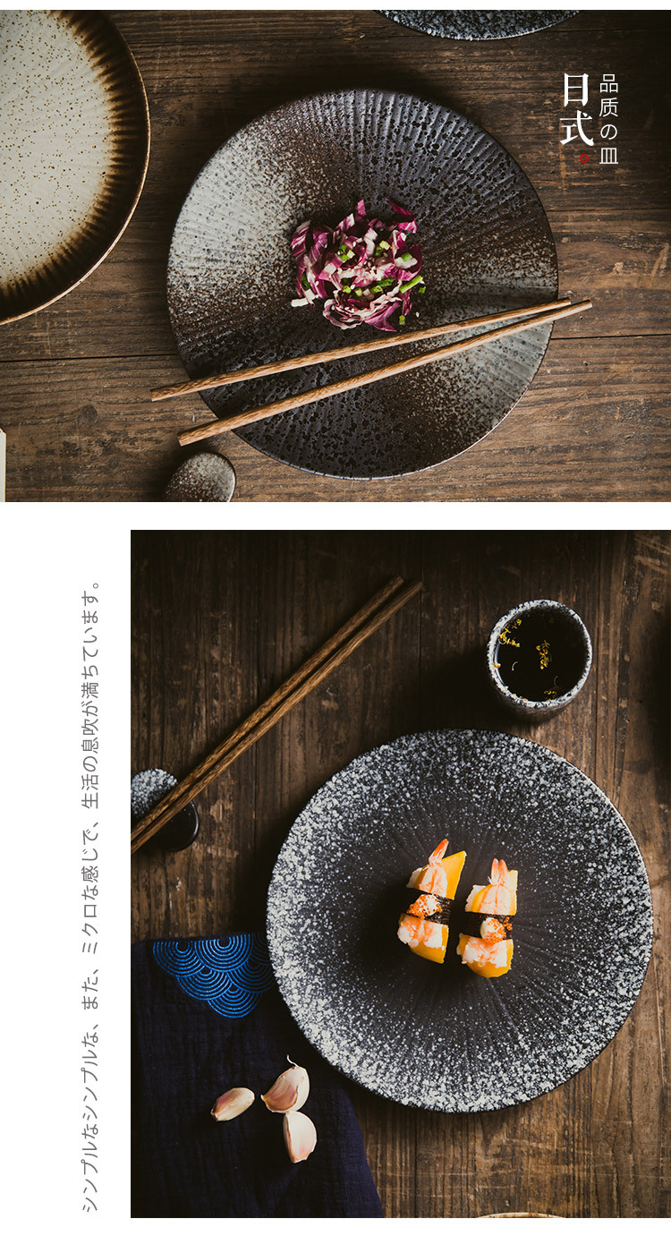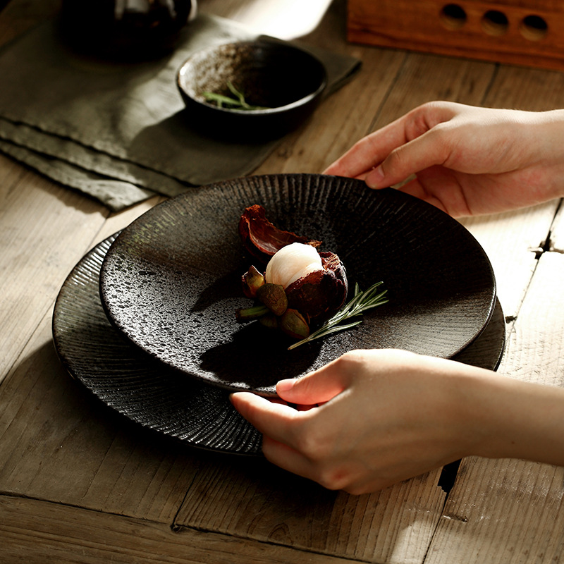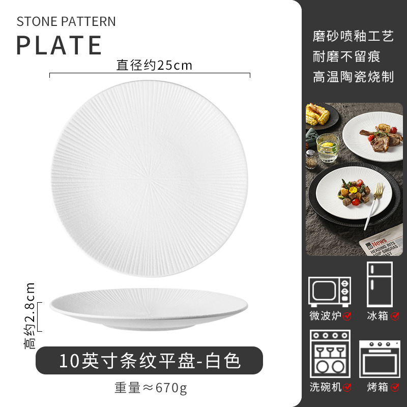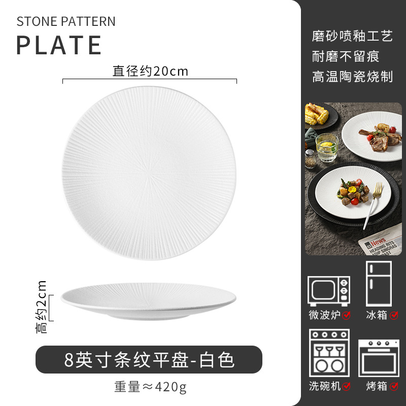 Striped shallow plate Japanese ceramic plate Creative dining plate Home retro tableware Striped creative dining plate Breakfast plate