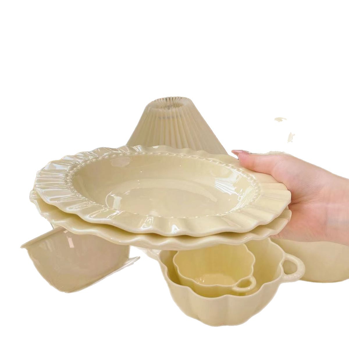 Milk Fufu Cream Lace Plate Home Breakfast Fruit Plate Salad Plate Vegetable Plate Cream Oil Wind Straw Hat Plate