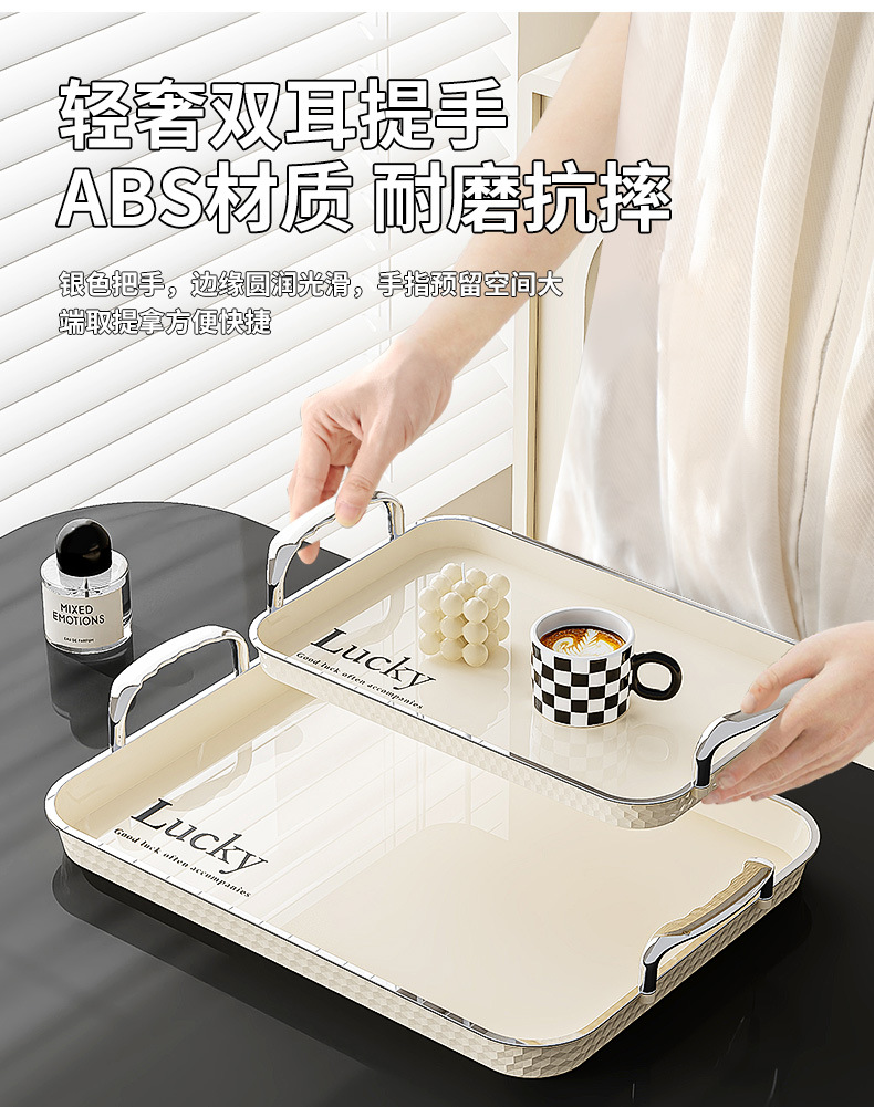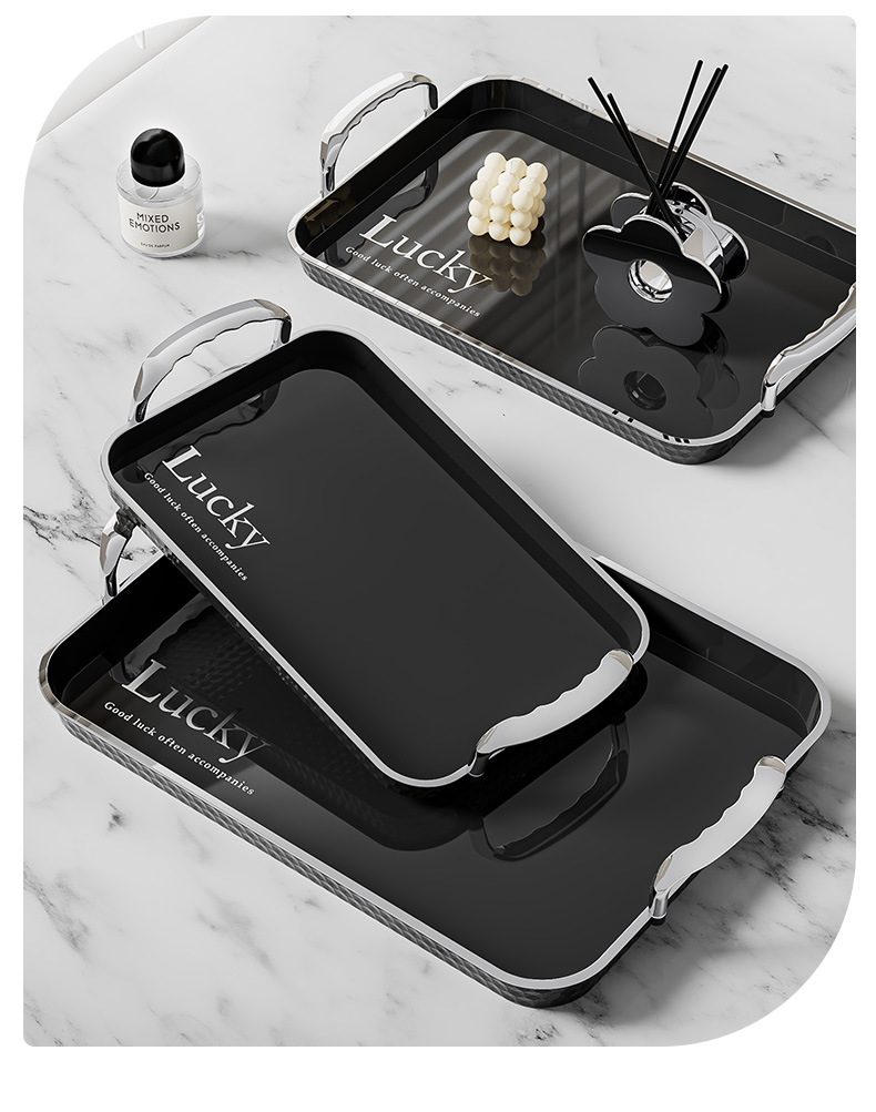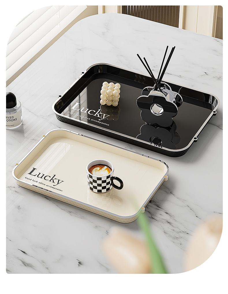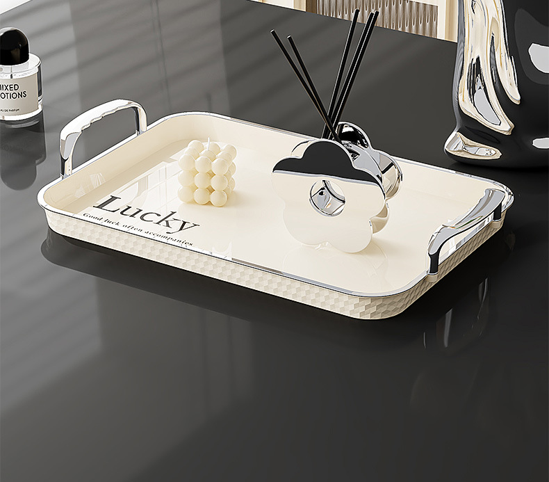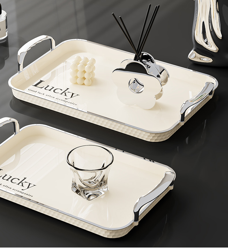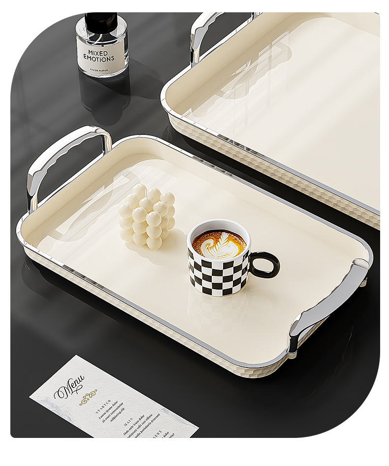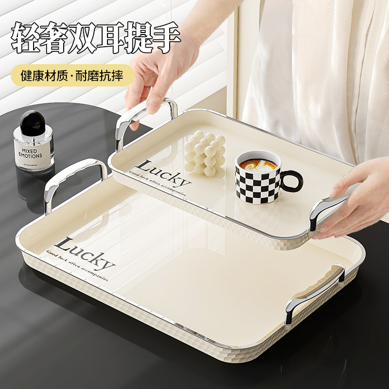 Light luxury rectangular water cup tray with high aesthetic value for home use, cup storage plate, Instagram style fruit cake dining plate
