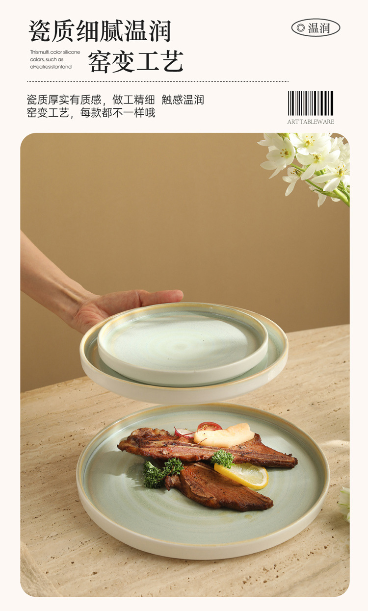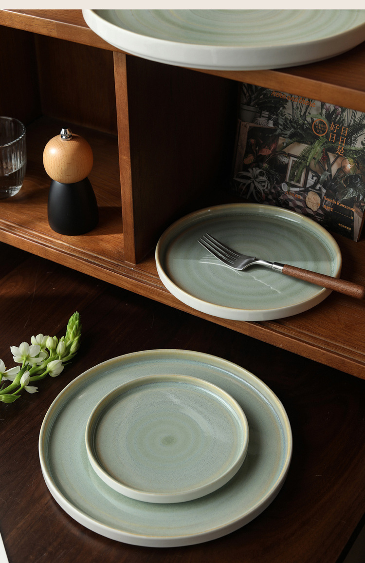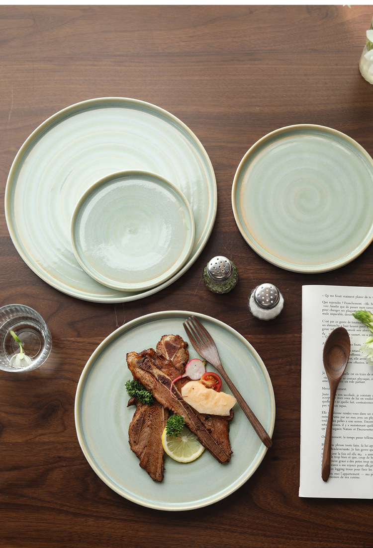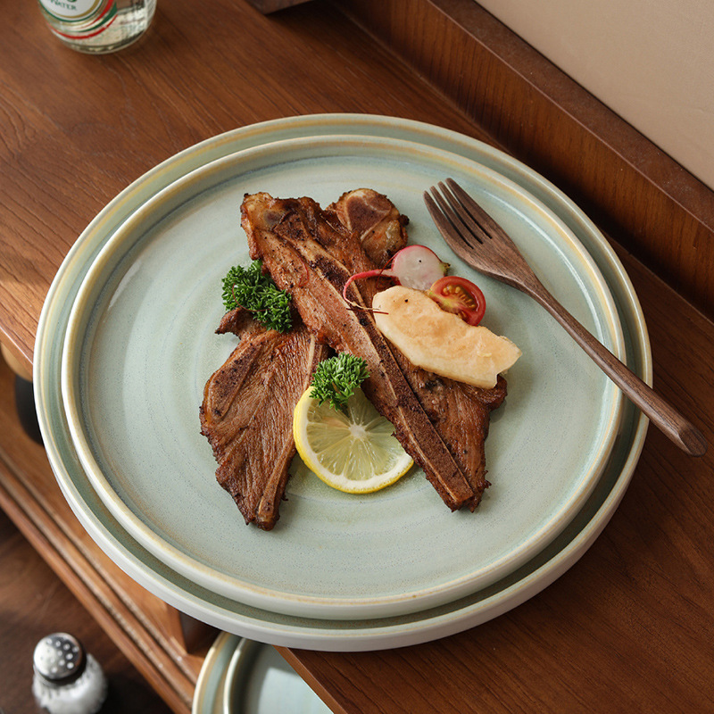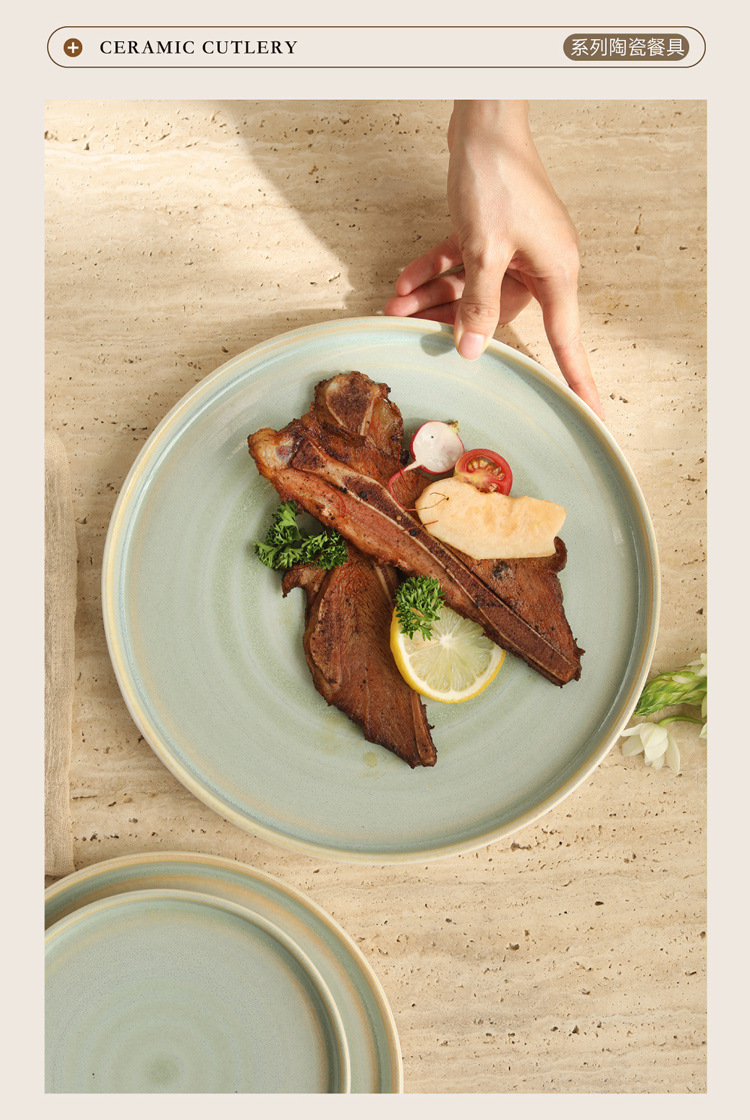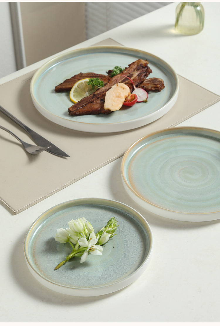 Japanese kiln style ceramic steak plate, home plate, high-end breakfast pasta flat plate, Western dessert plate