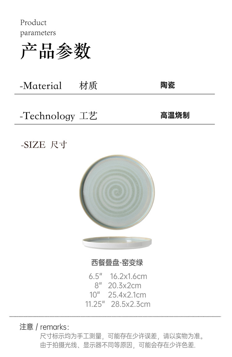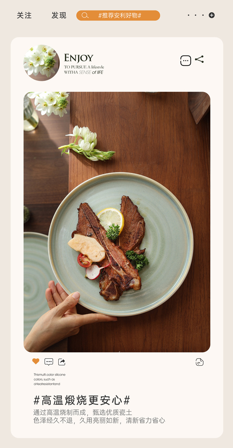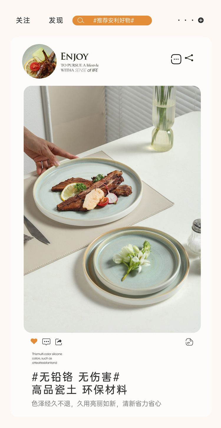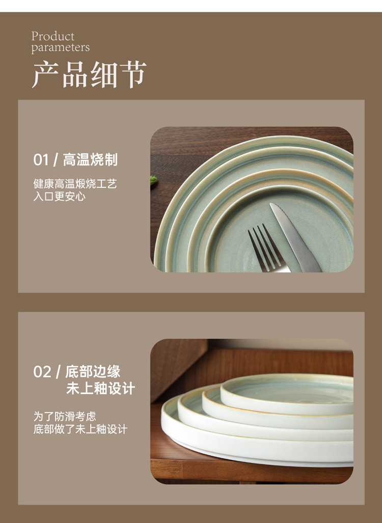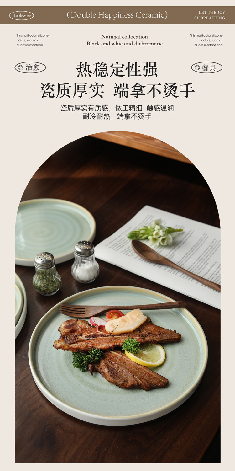 Japanese kiln style ceramic steak plate, home plate, high-end breakfast pasta flat plate, Western dessert plate