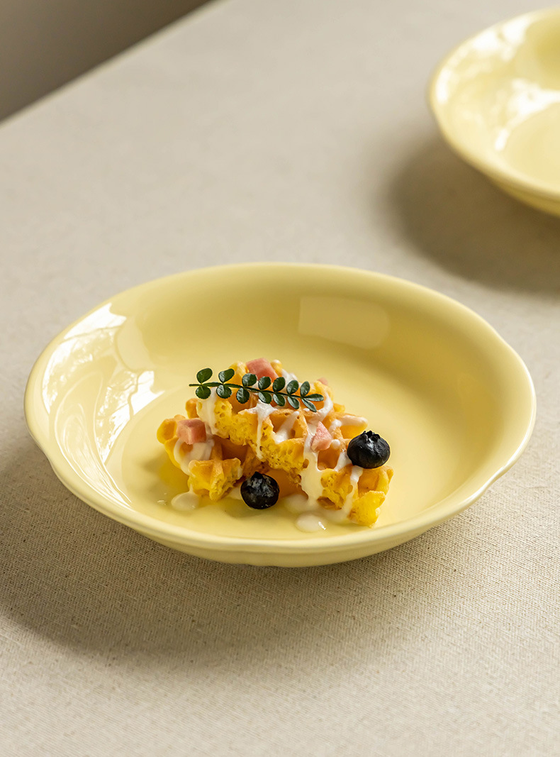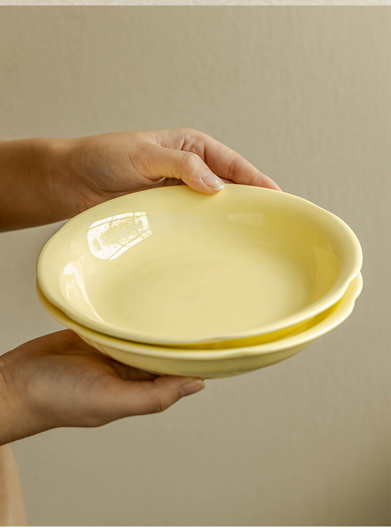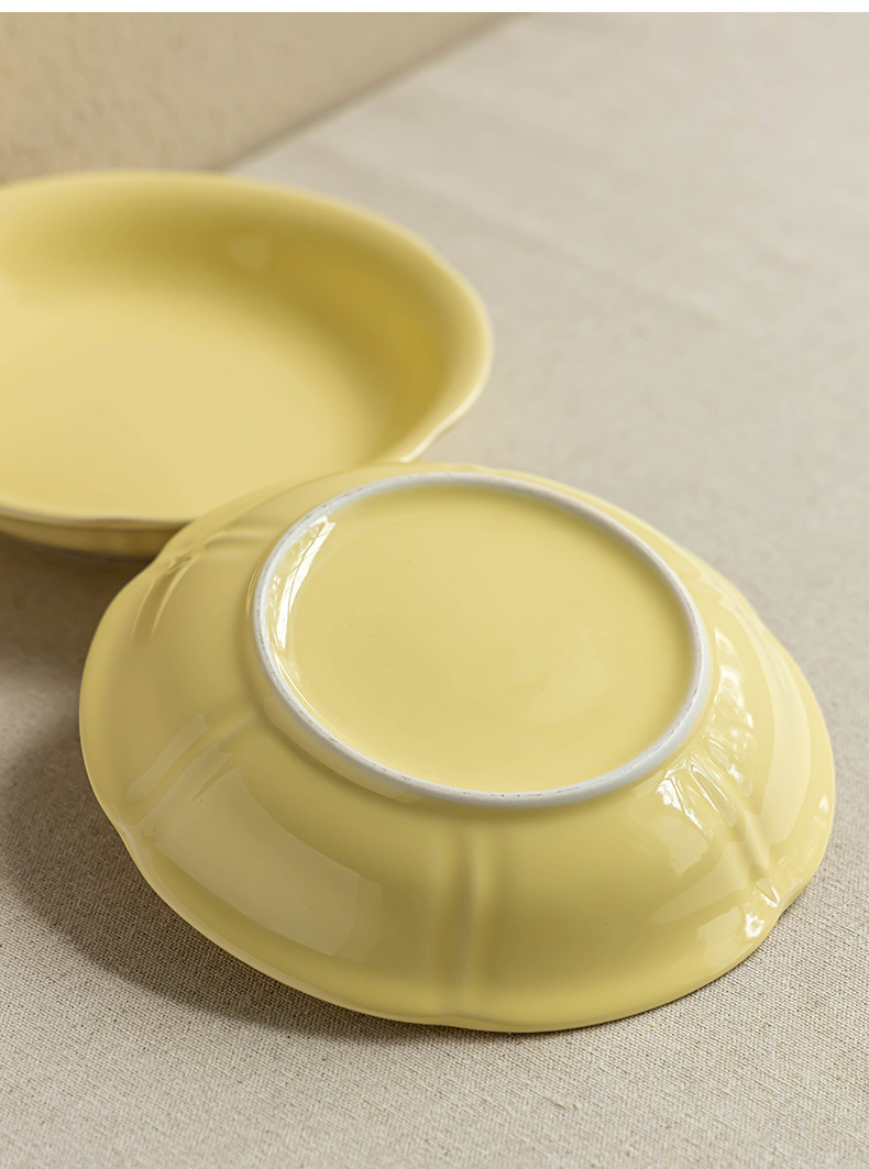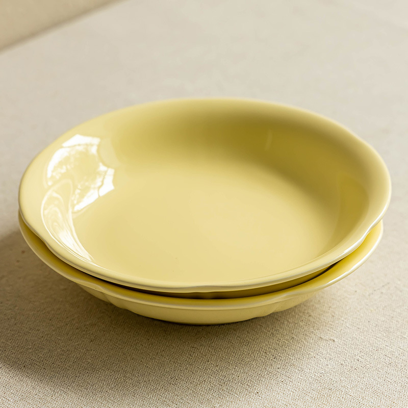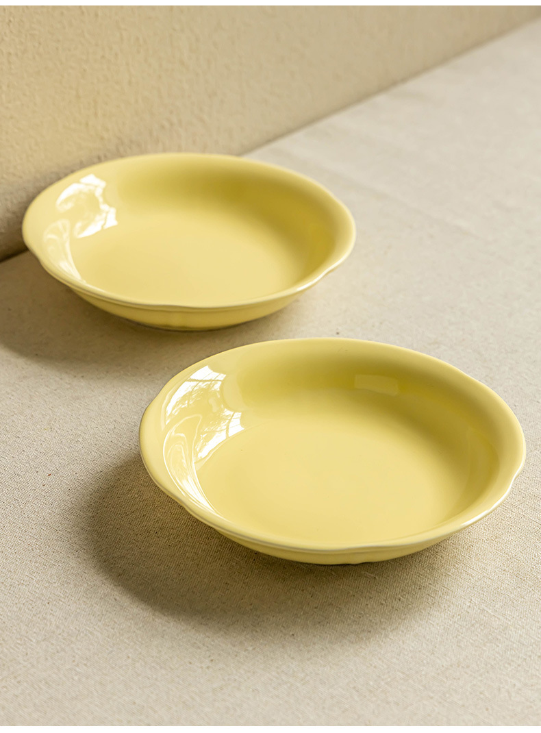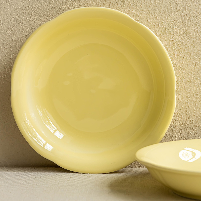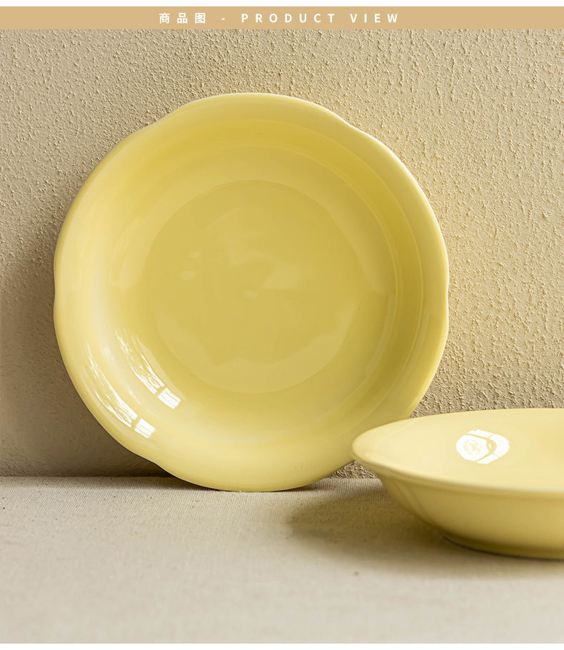 Cream style household solid color ceramic plate Small fresh dessert inventory Heart plate Breakfast plate Tableware Round plate Dining plate