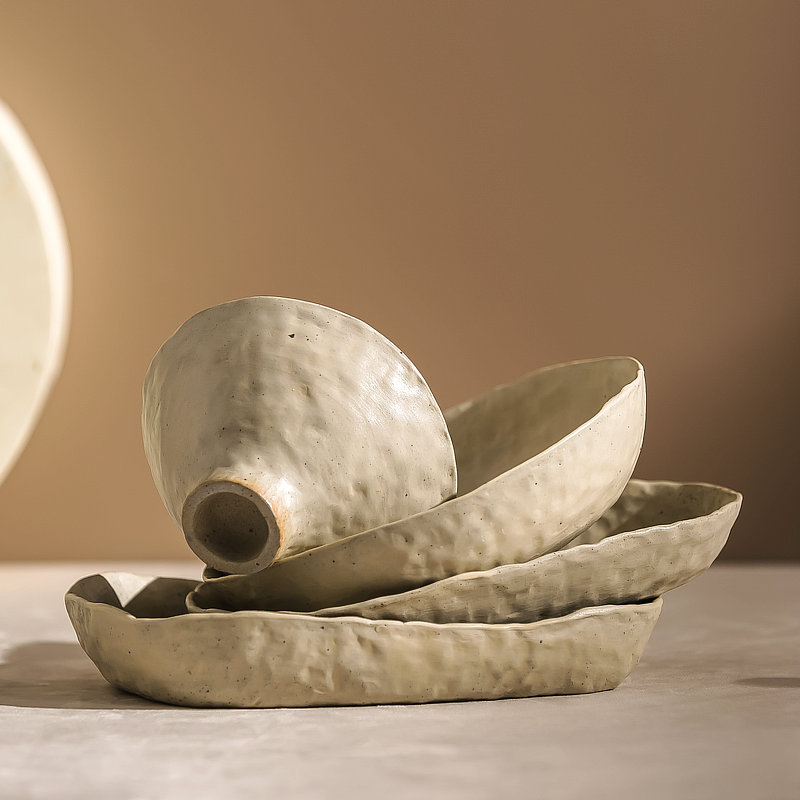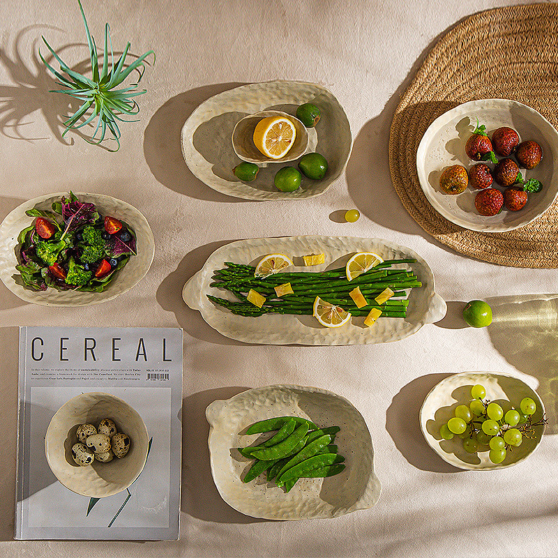High aesthetic hand kneaded vegetable dish, Japanese ceramic handmade dish, household rough pottery retro fish dish, tableware, rice bowl