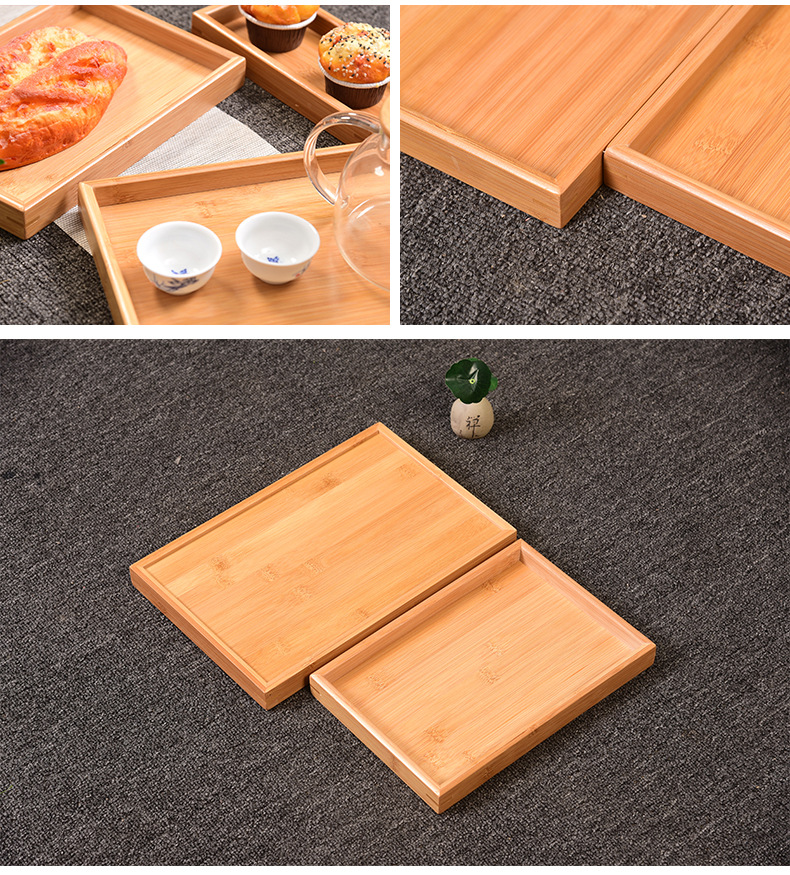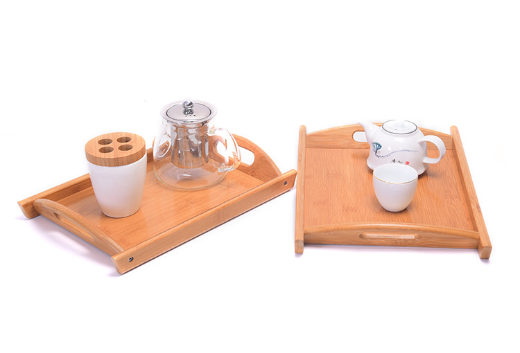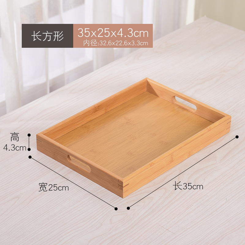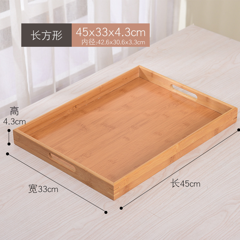 Bamboo hotel right angle tray, tea tray, household bamboo and wood handle plate, restaurant fast food plate, double ear fruit tray