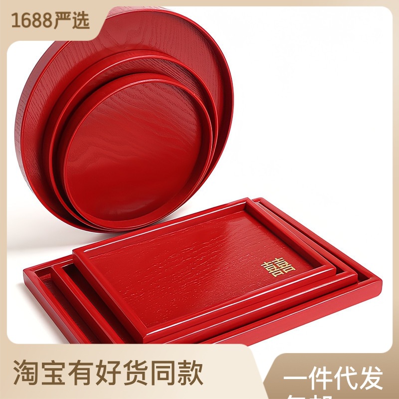 Hotel Black Wooden Tray Rectangular Restaurant Retro End Plate Household Tea Cup Flat Plate Wholesale Light Luxury