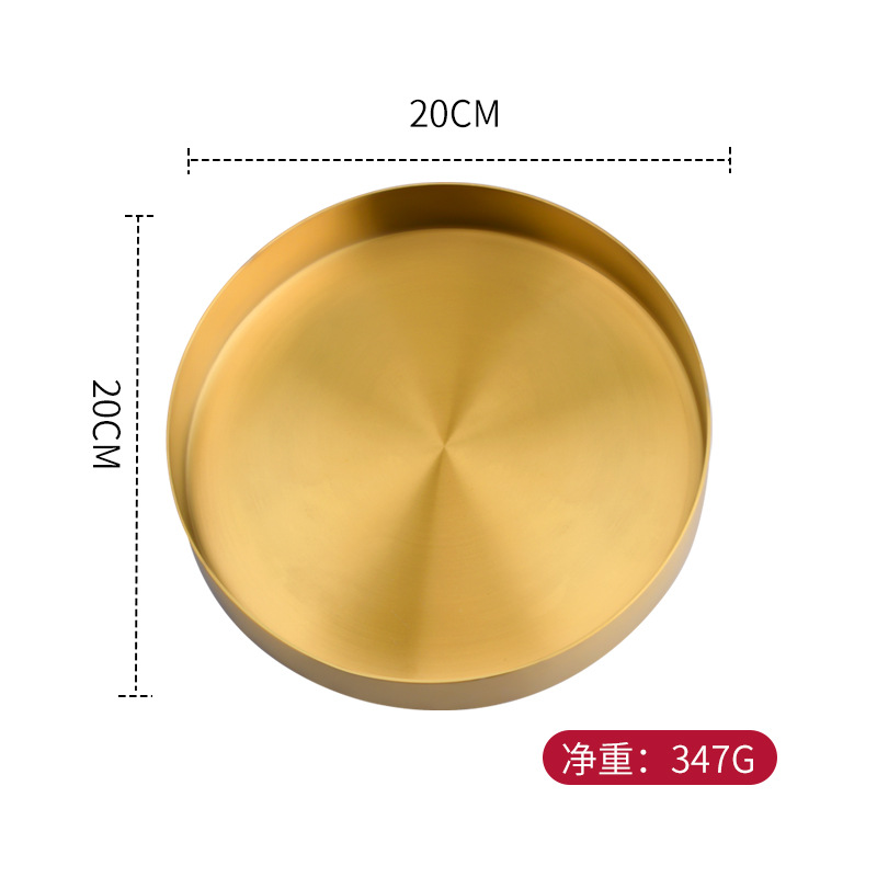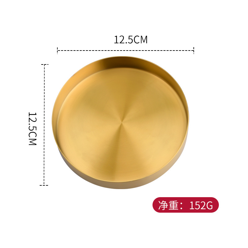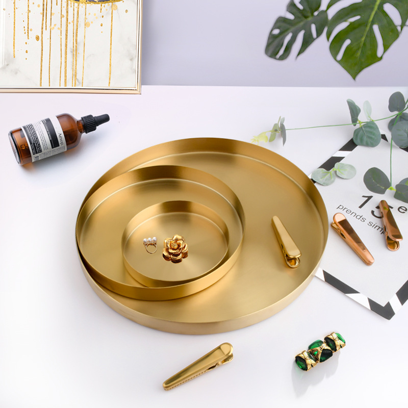 Korean style ins gold circular stainless steel tray, home jewelry storage tray, cosmetics metal tray, water cup tea tray
