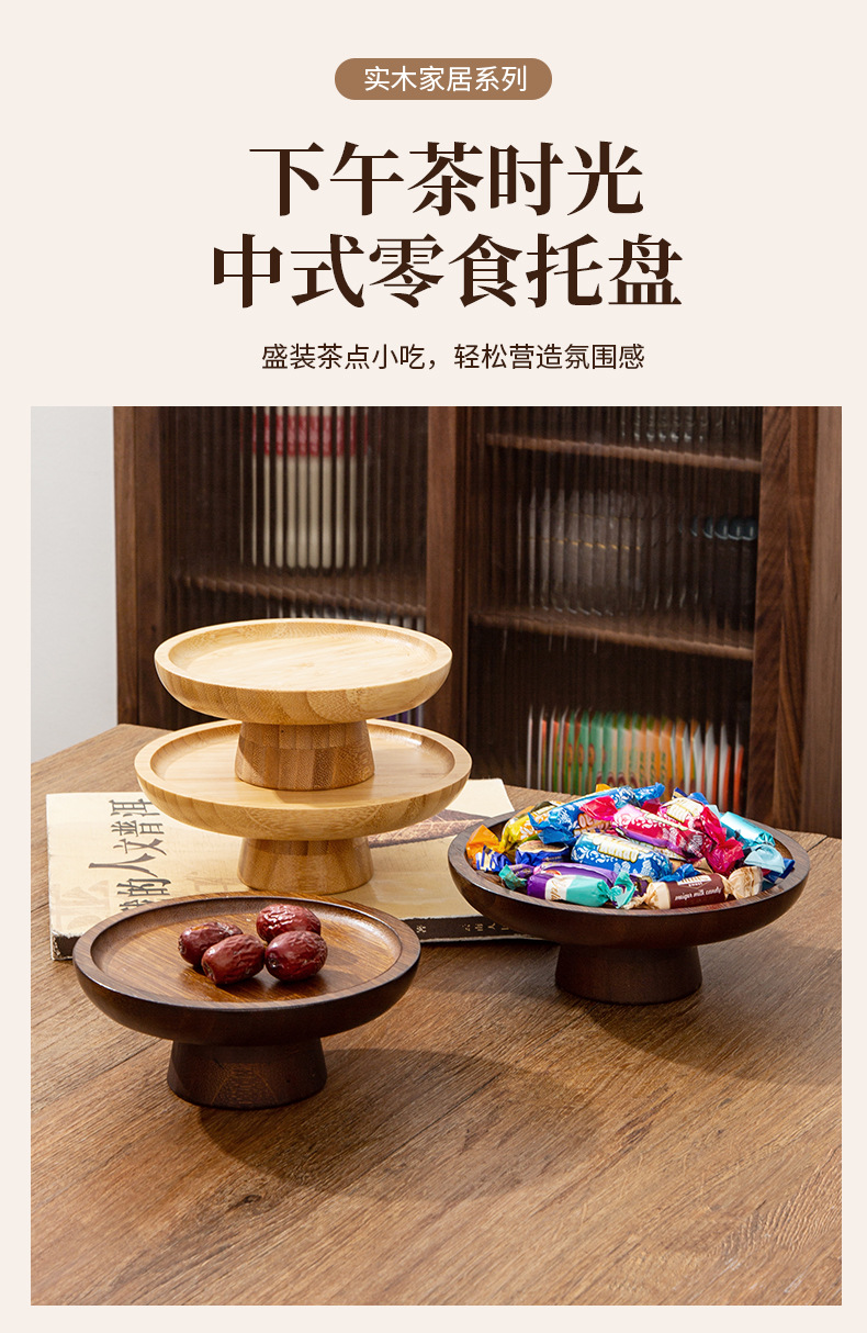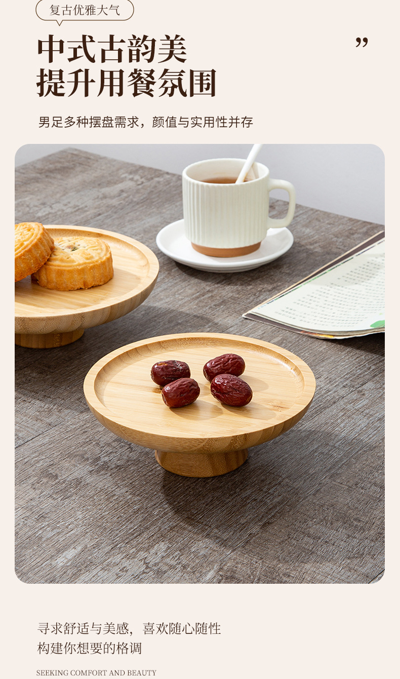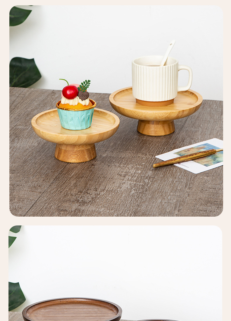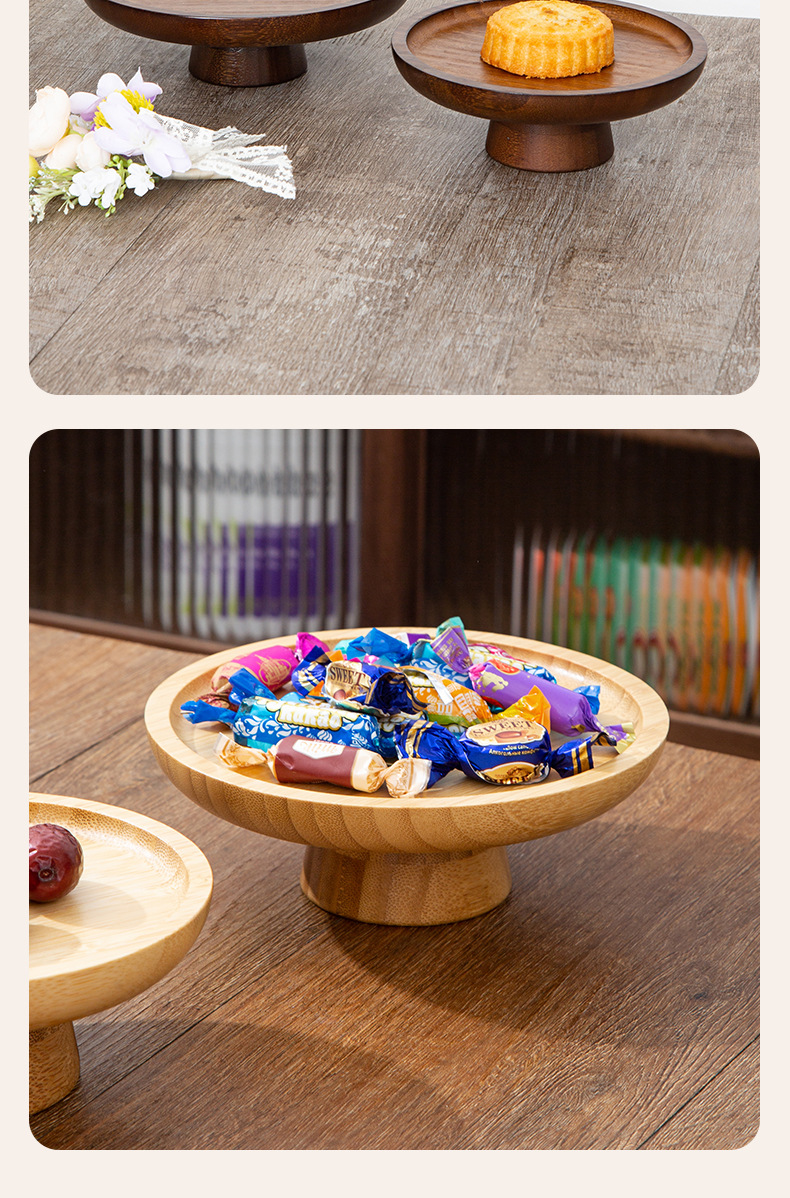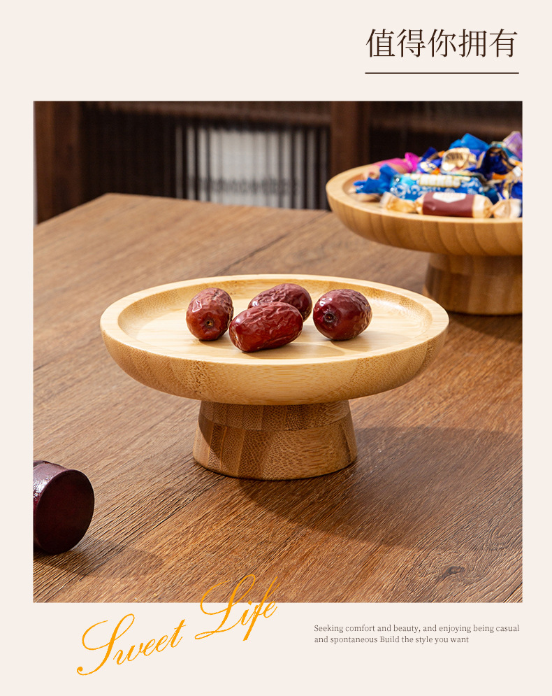Простая винтажная деревянная тарелка с высокими ногами домашняя гостиная поднос десертный стол демонстрационная стойка бамбуковая тарелка с высокими ногами фруктовая тарелка