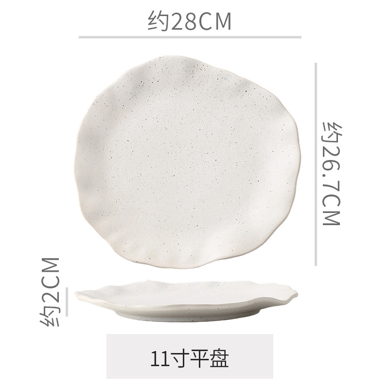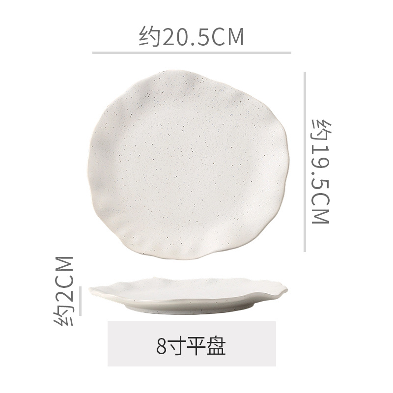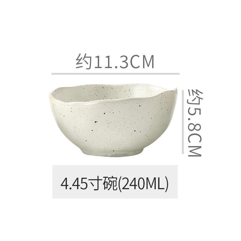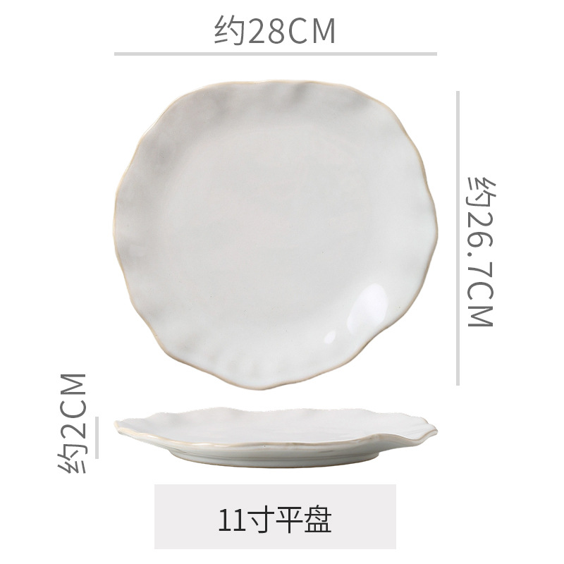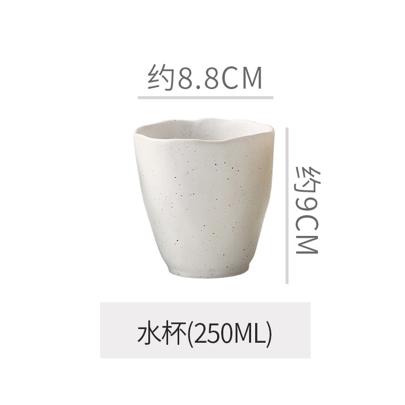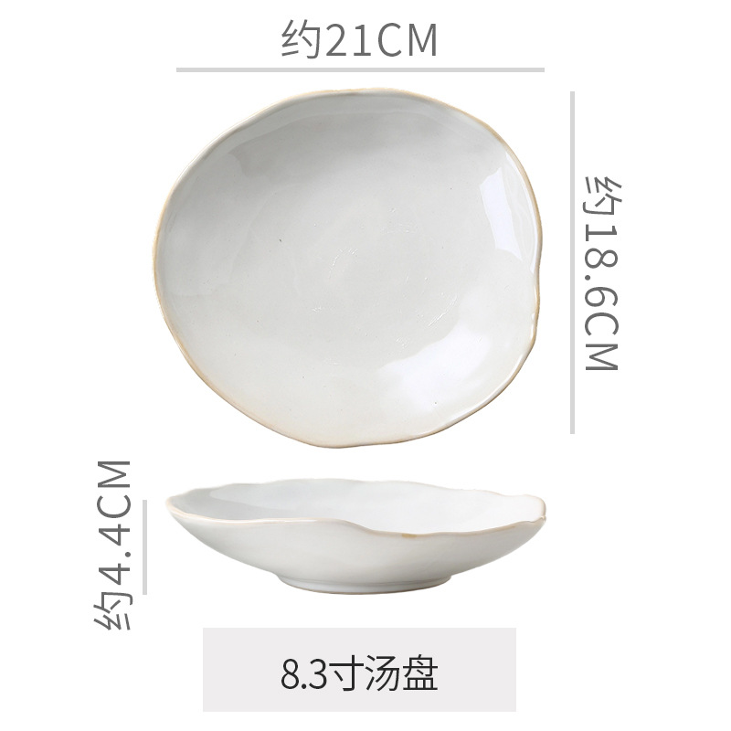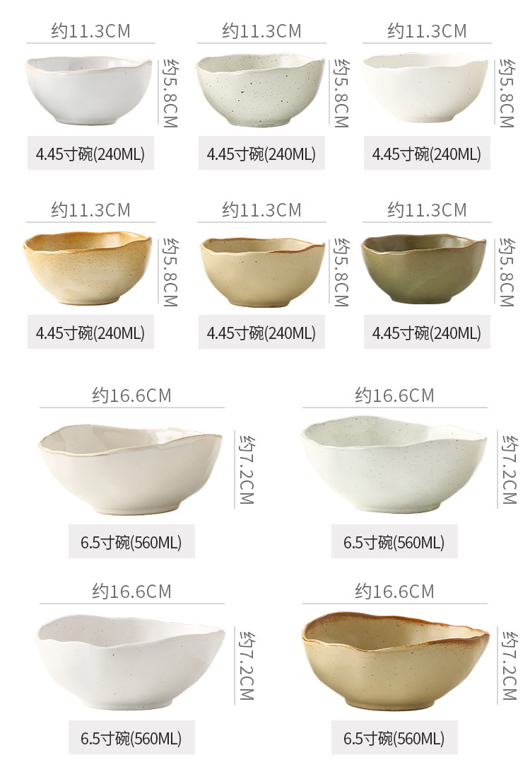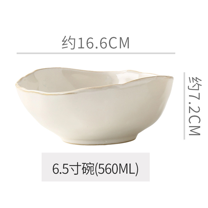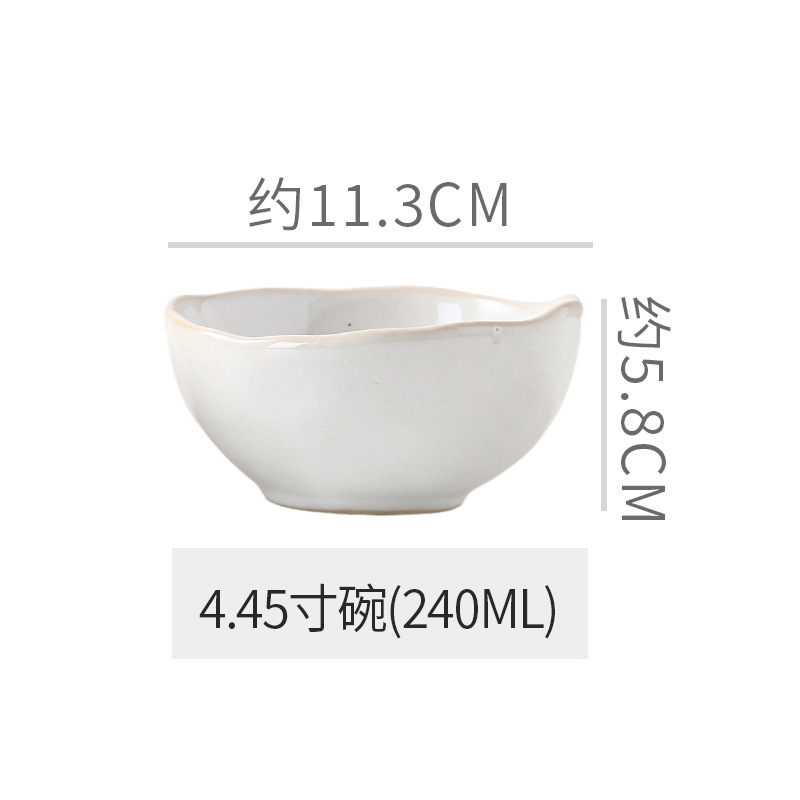 Retro style coarse pottery heat-resistant tableware for household use, including vegetable dishes, rice bowls, soup bowls, water cups, and shaped kiln style dining plates. Creative arrangement of plates
