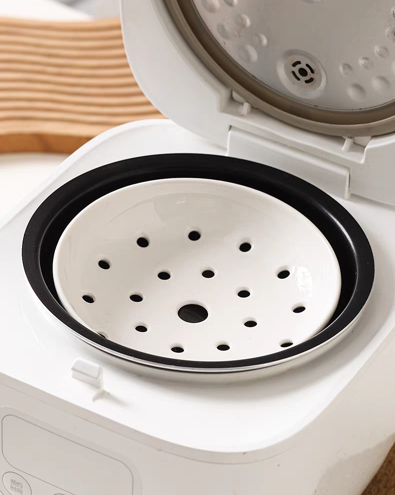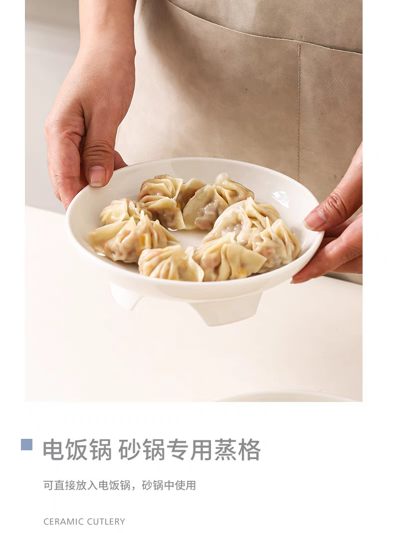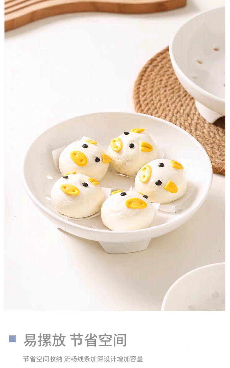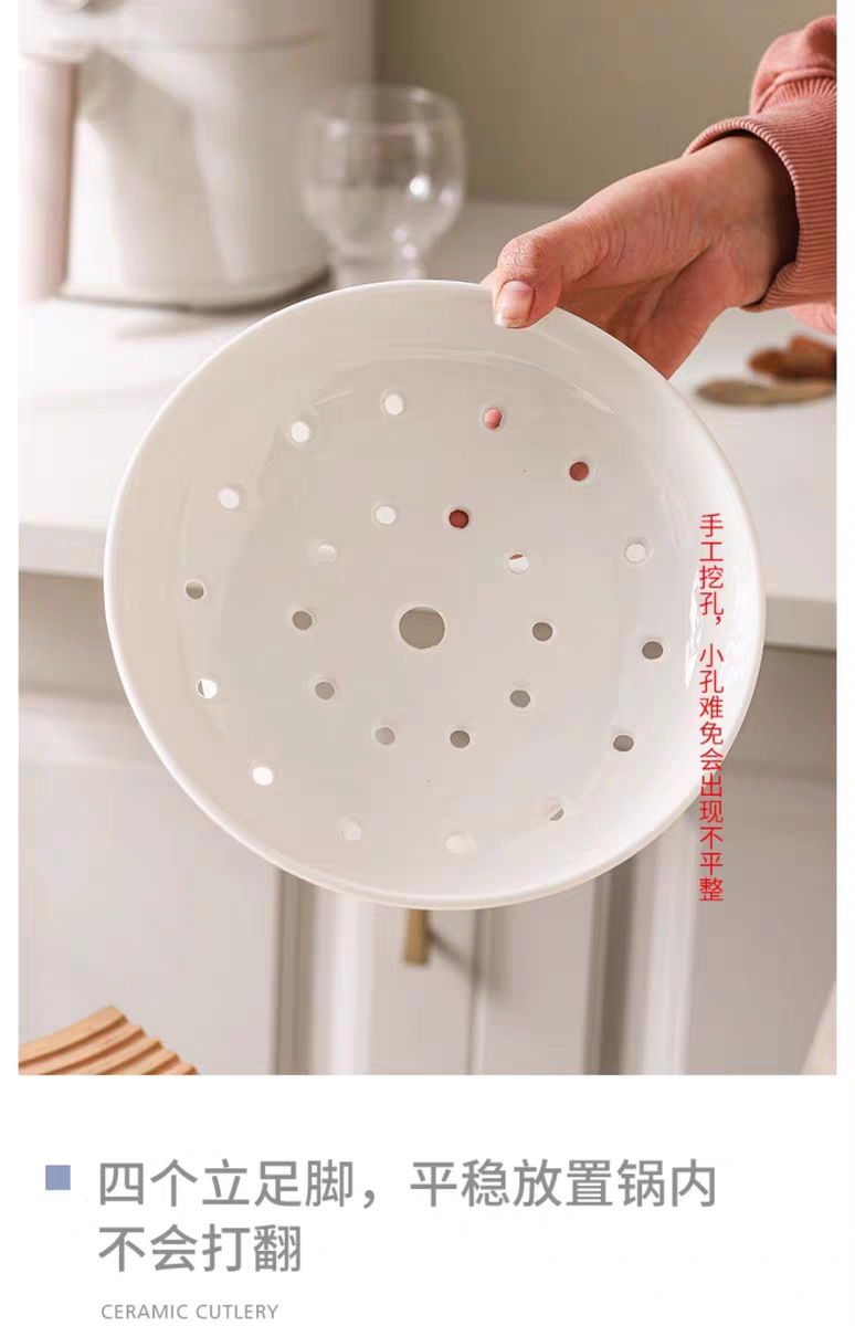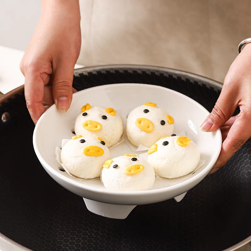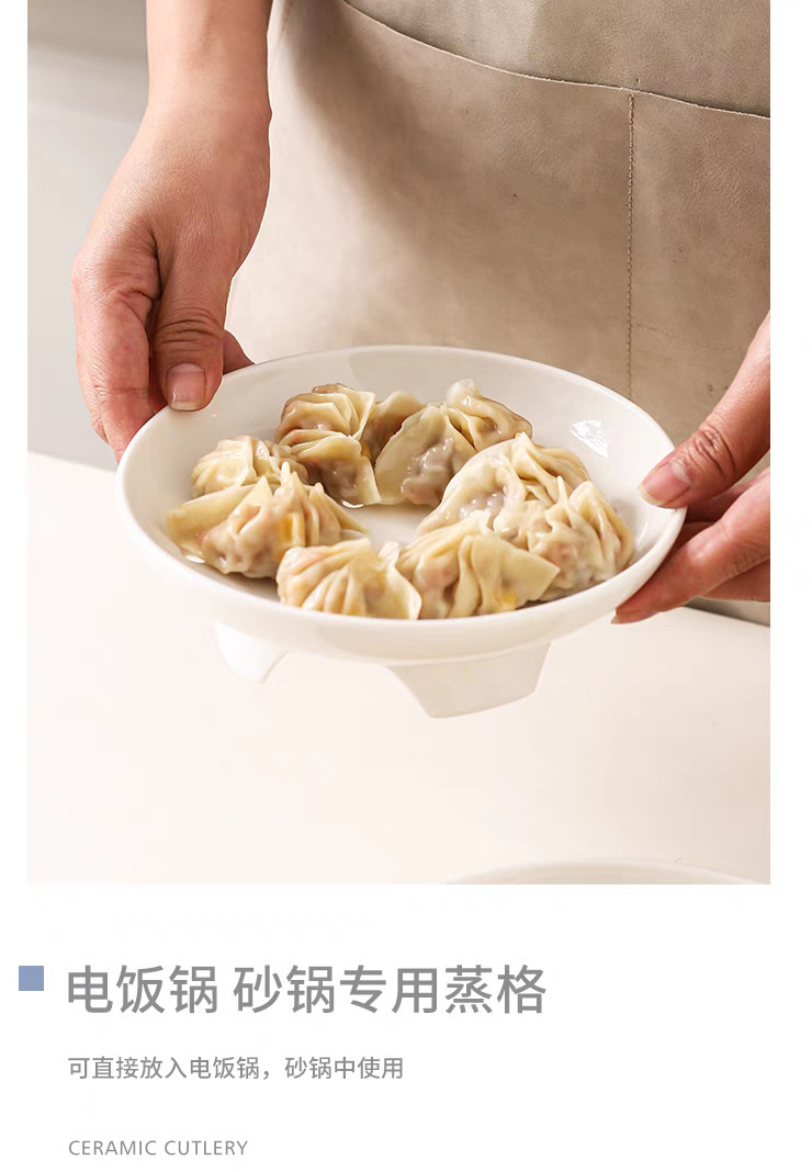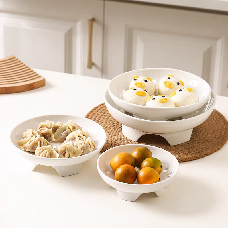 High footed steaming tray, ceramic tableware, creative tray, pure white household oil control bowl, large vegetable dish, fruit double-layer drainage plate