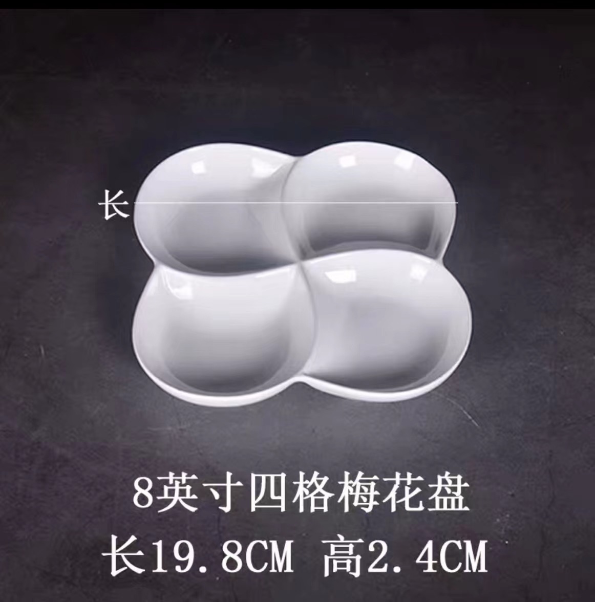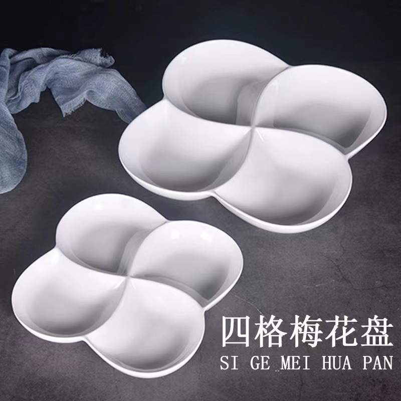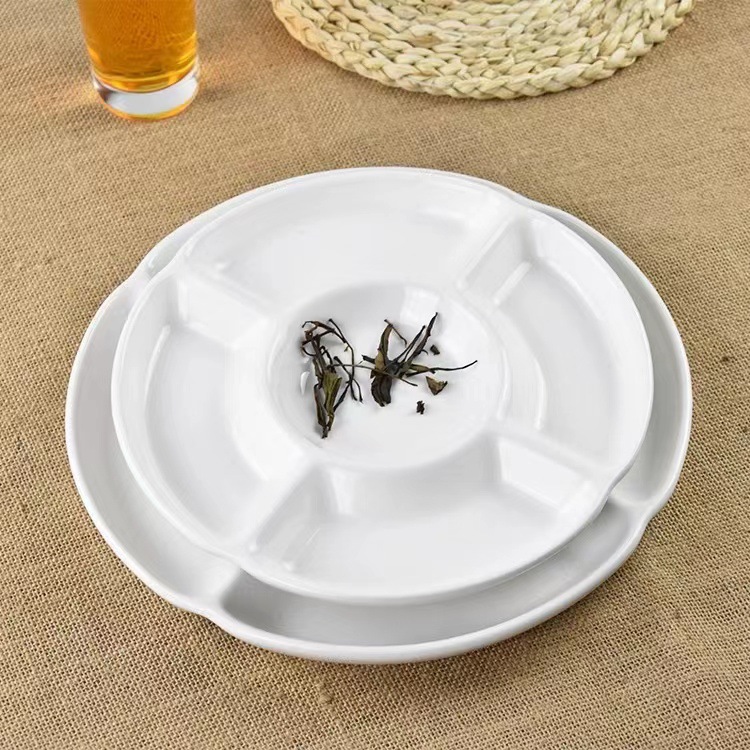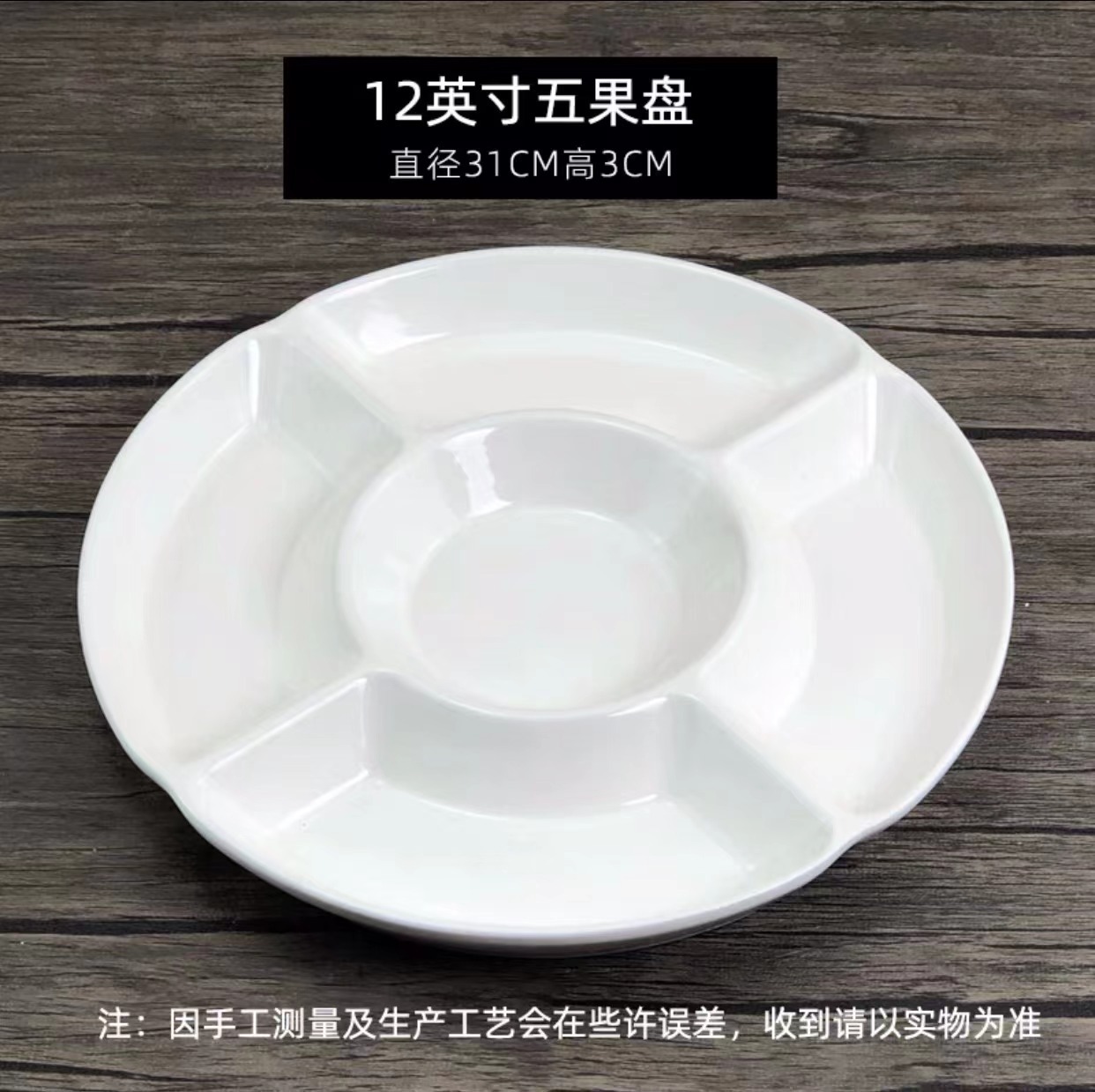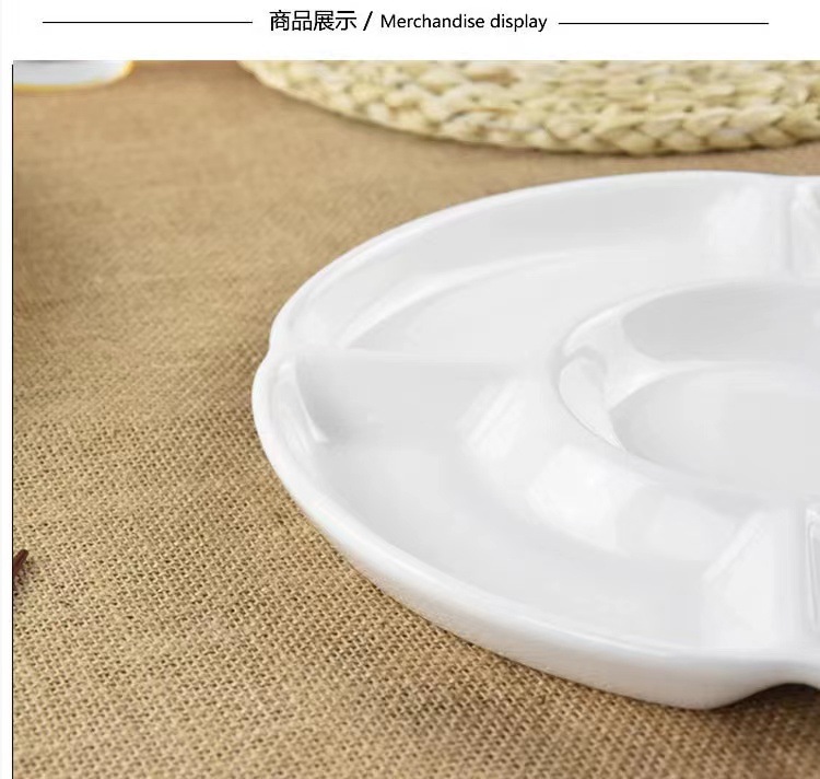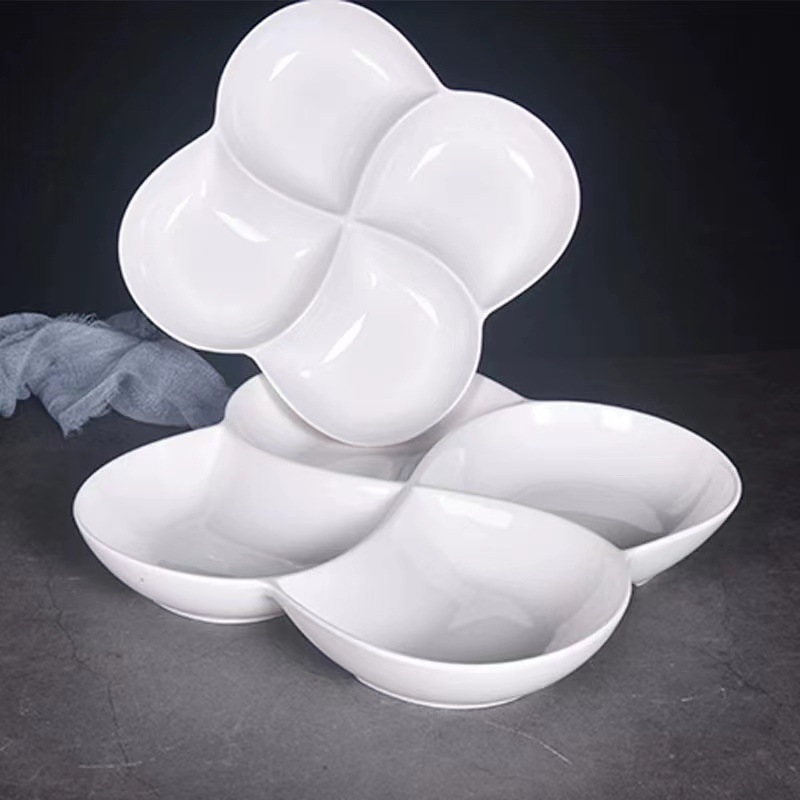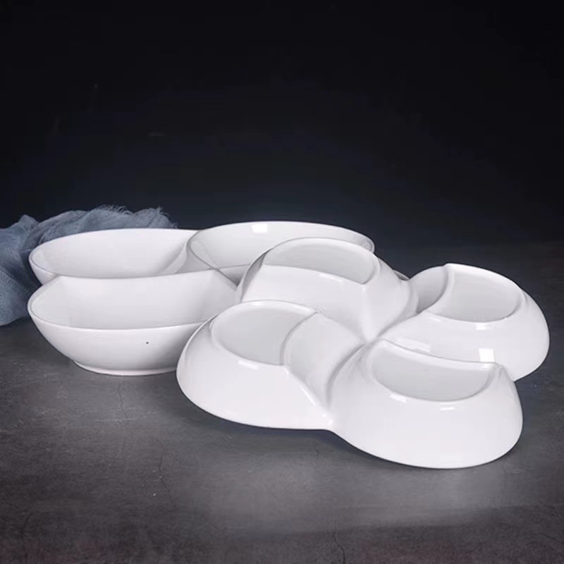 Ceramic white five fruit plate creative brine platter hotel home restaurant multi grid dried fruit Dim sum plate