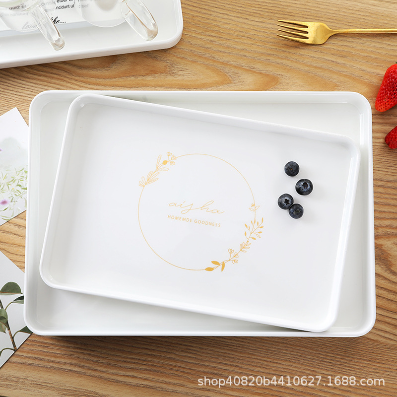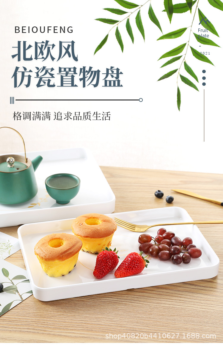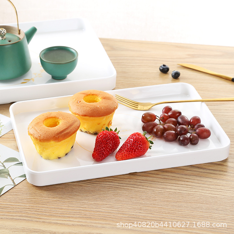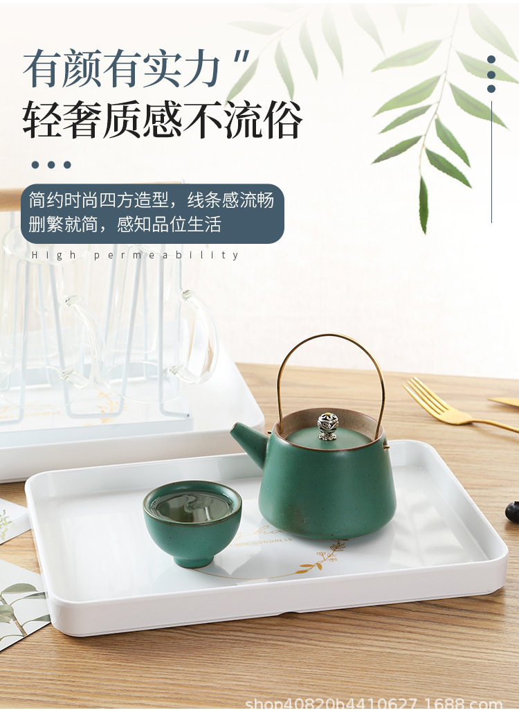 White plastic tray, rectangular tea tray, household baking tray, tea cup, Nordic light luxury water cup, storage melamine
