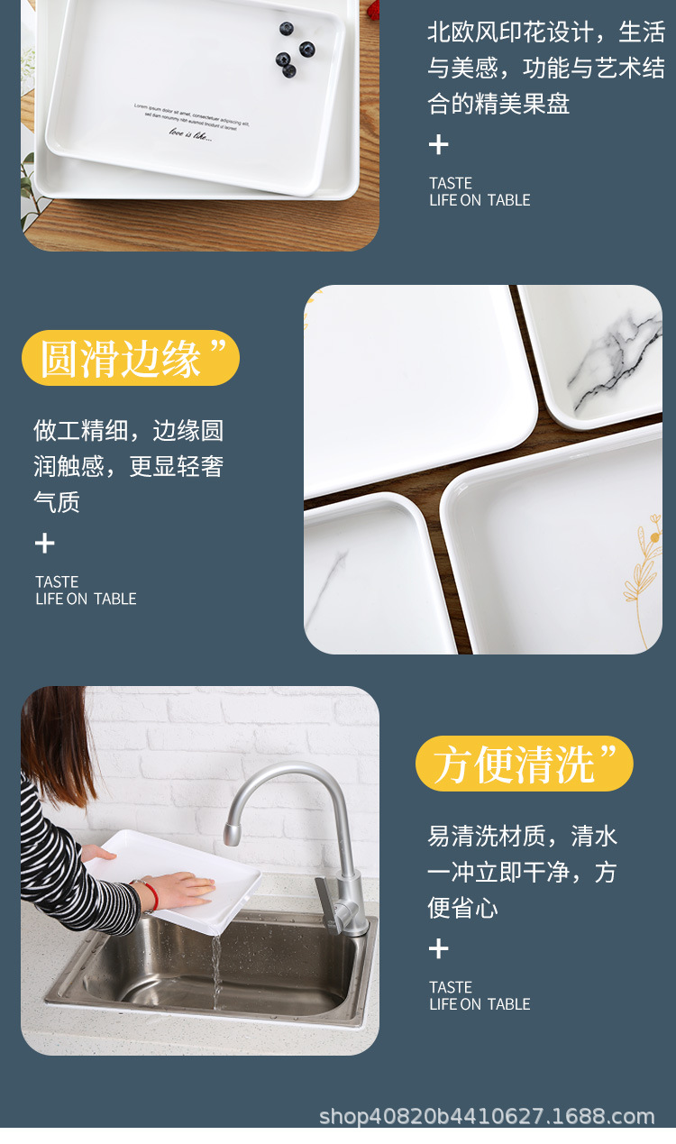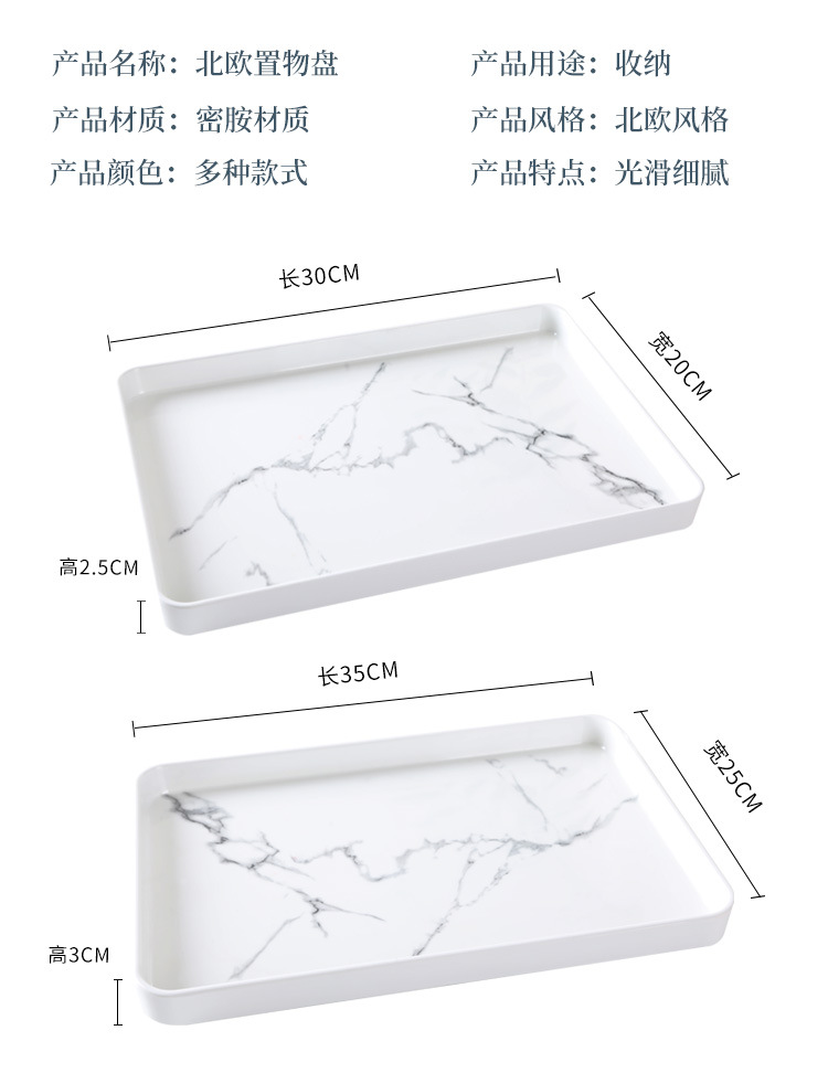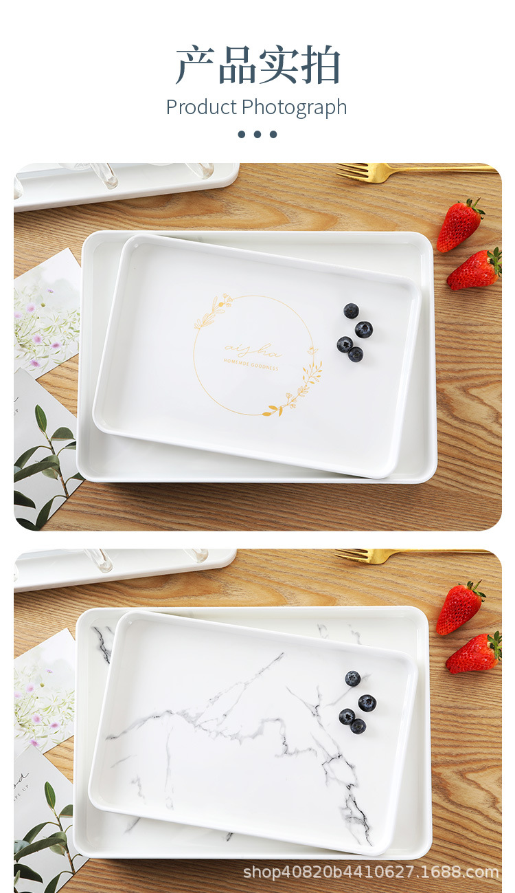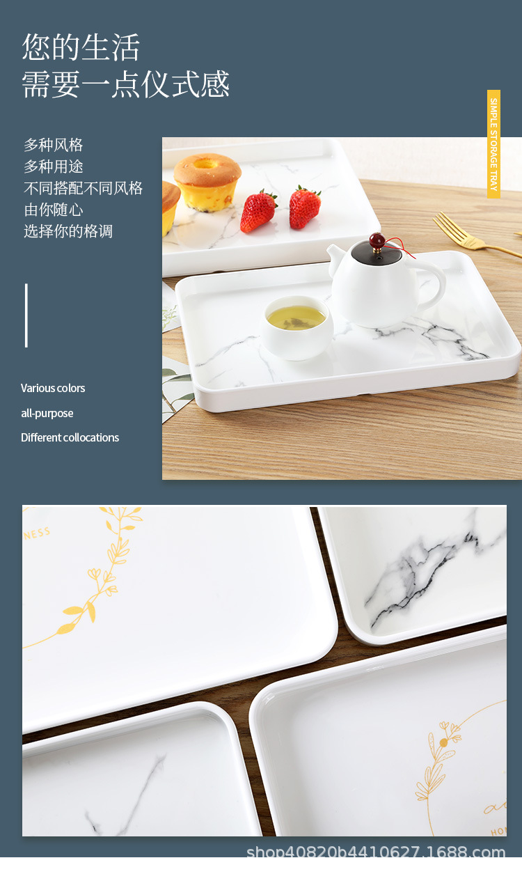 White plastic tray, rectangular tea tray, household baking tray, tea cup, Nordic light luxury water cup, storage melamine