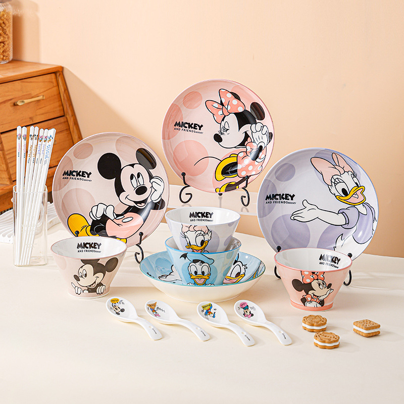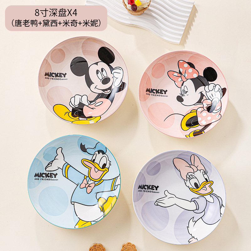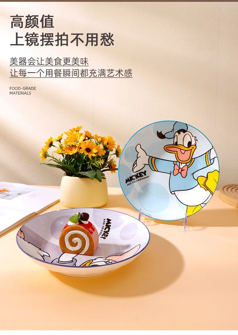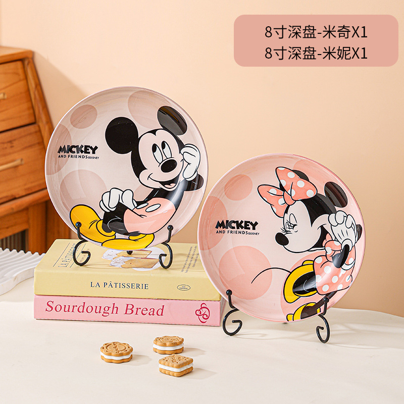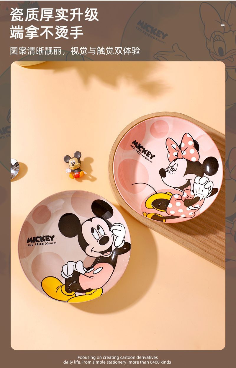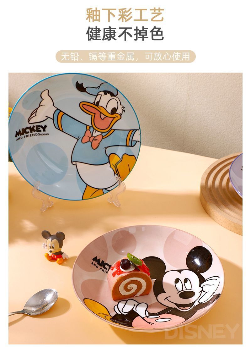 Disney ceramic plate with high aesthetic value cartoon disc, Le You Mickey household underglaze color dish, heat-resistant deep dish