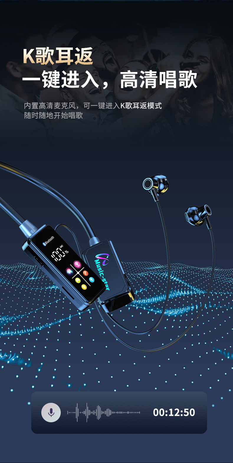 Скачать KGE Прямая трансляция шея Bluetooth Наушники сверхдлинные беспроводные спортивные наушники