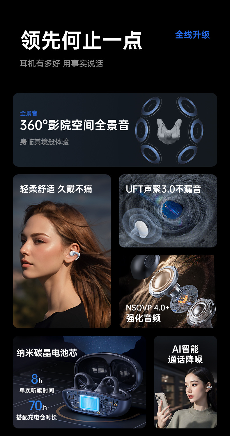 Новые наушники Bluetooth для снижения шума беспроводные наушники с зажимом для ушей без входа в ухо водонепроницаемое движение