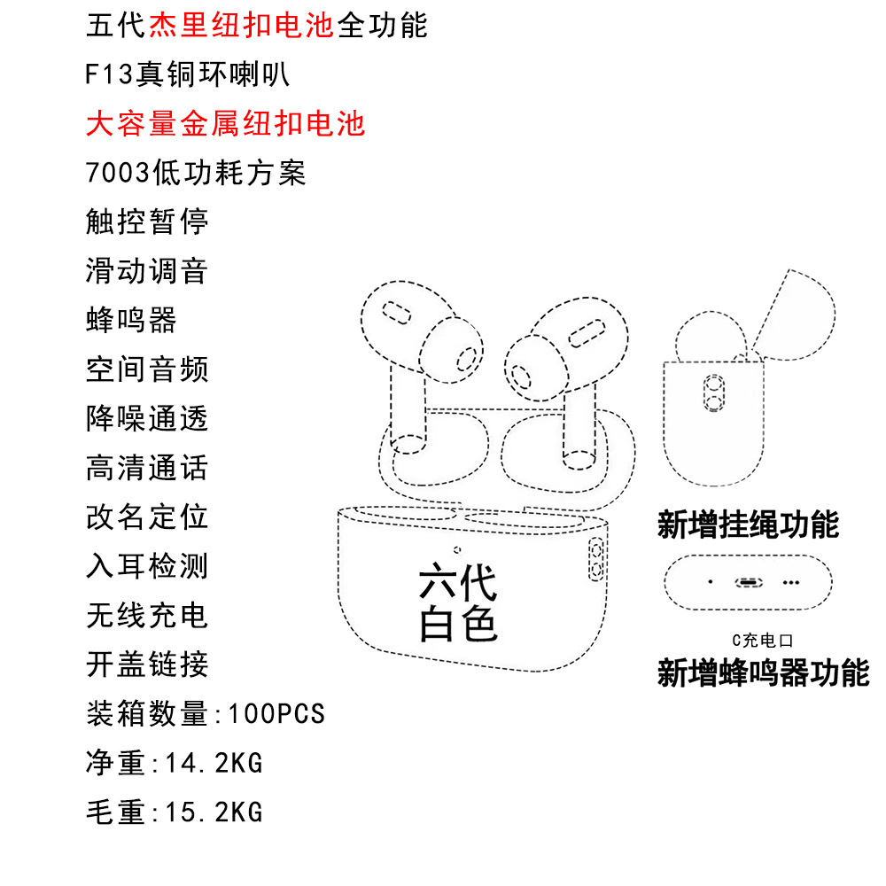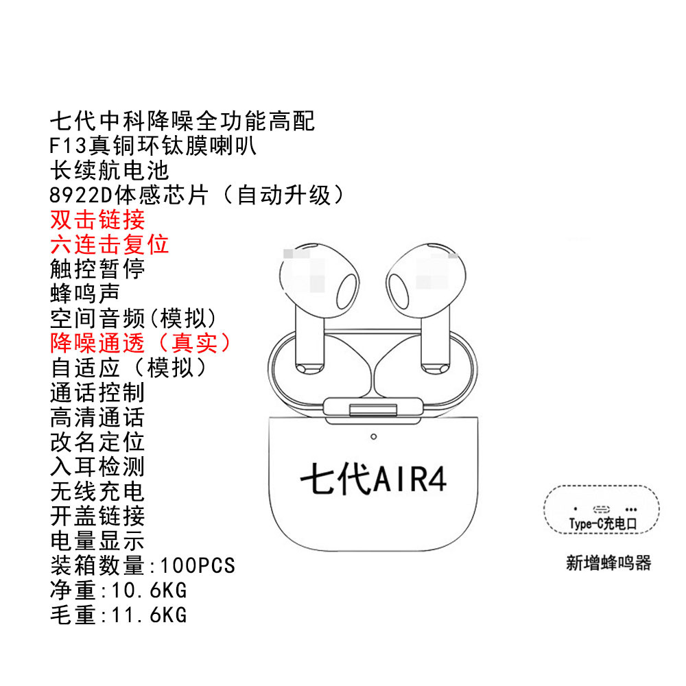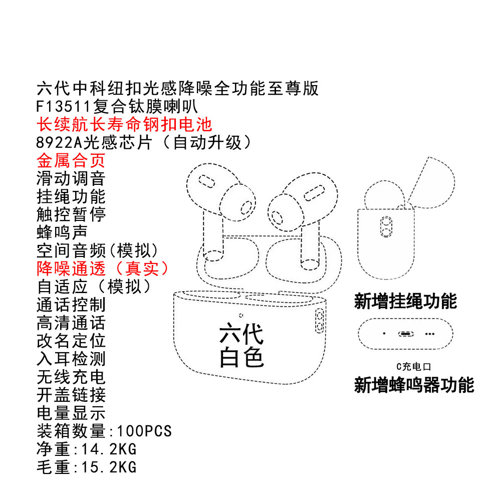 Режим управления: новая ссылка три правда + магнитная всасывающая беспроводная зарядка + обнаружение входа в ухо (соматическое восприятие) + переименование позиционирование полный + пространственный аудио
