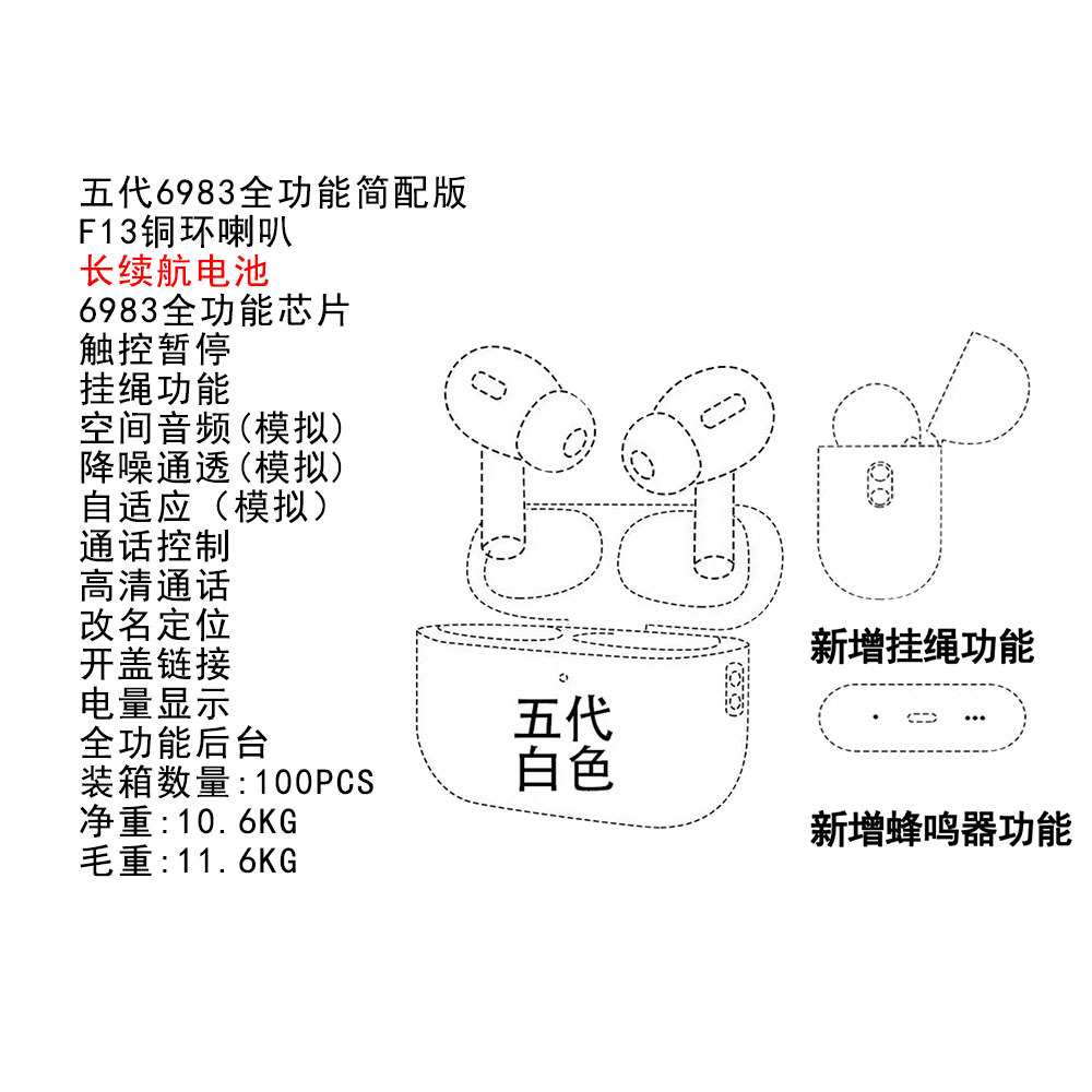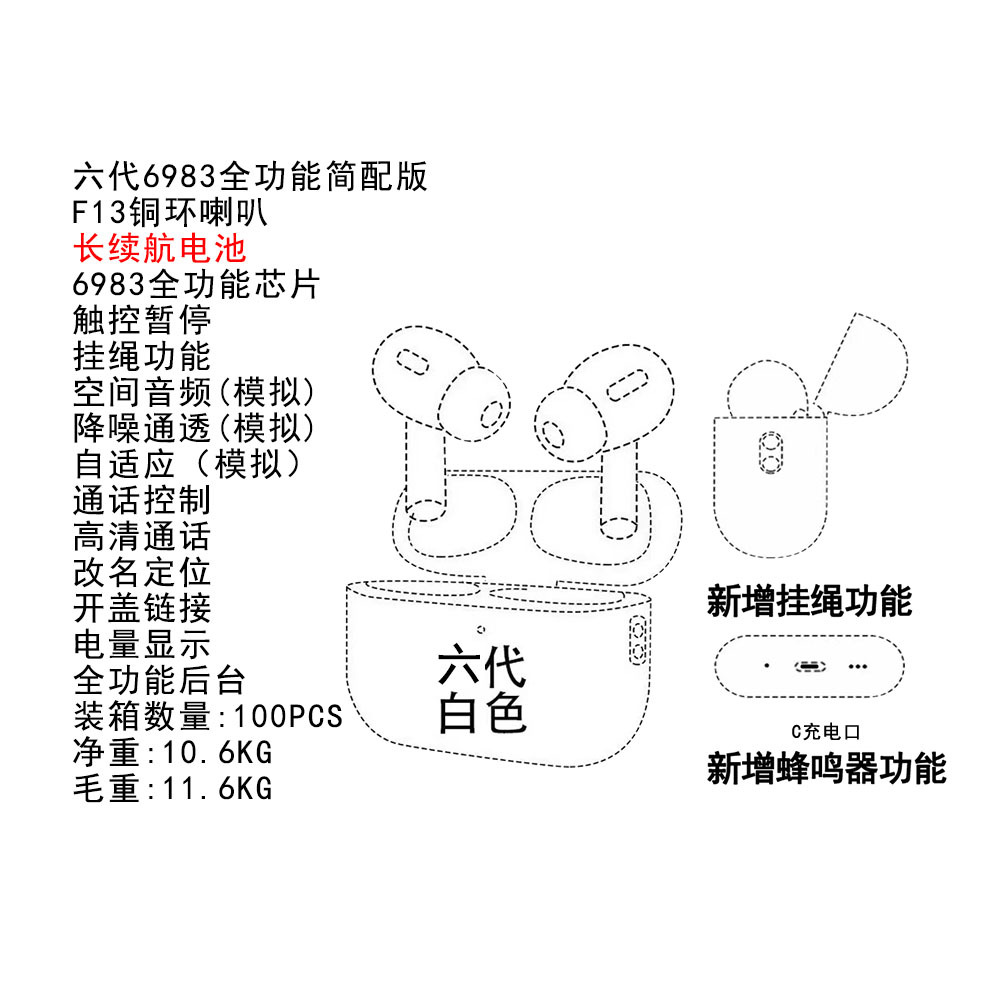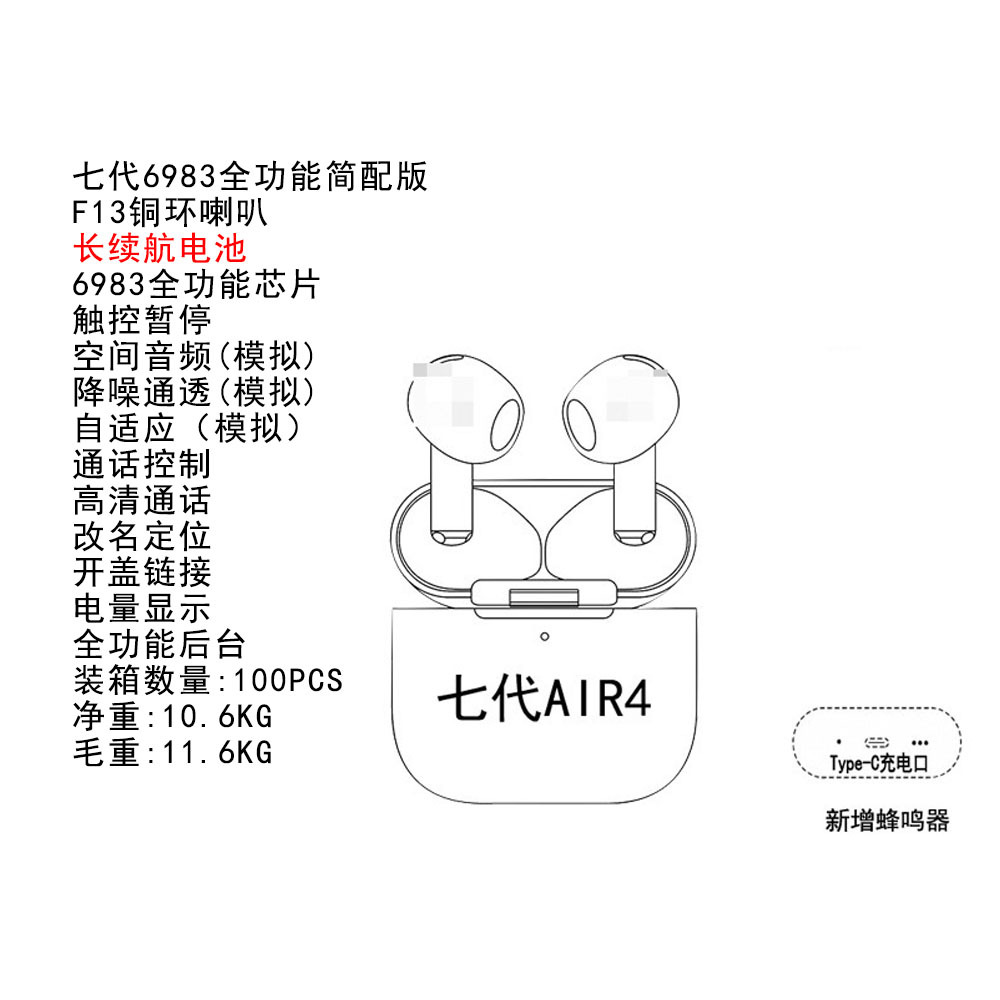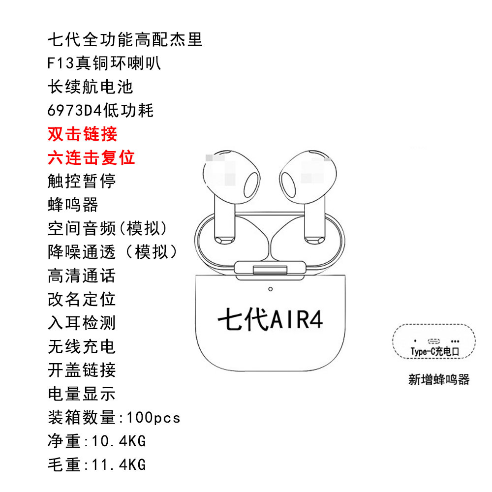 Режим управления: новая ссылка три правда + магнитная всасывающая беспроводная зарядка + обнаружение входа в ухо (соматическое восприятие) + переименование позиционирование полный + пространственный аудио