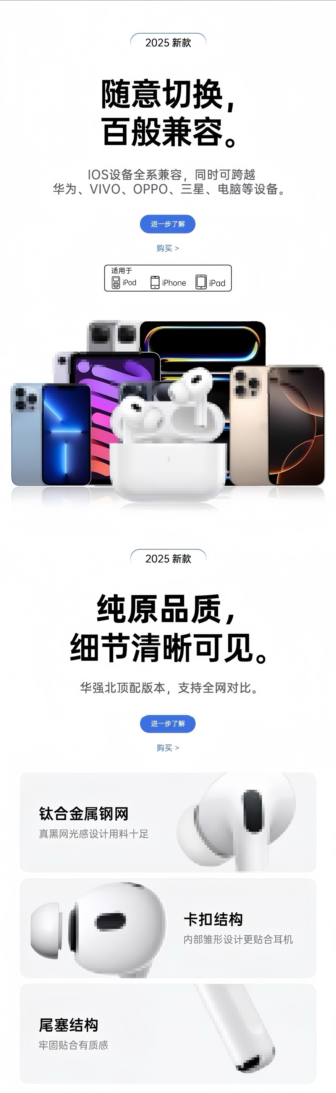 Беспроводные Bluetooth - наушники Pro2 от Huaqiang North ANC для снижения шума и беспроводной зарядки Apple для семи поколений наушников