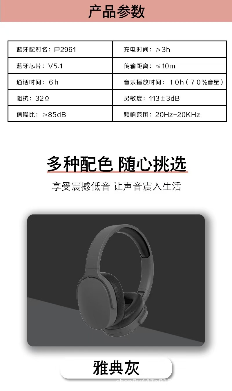 Беспроводные наушники Bluetooth P2961 Музыкальные игры Спортивные наушники Производитель Двусторонний стереозвук