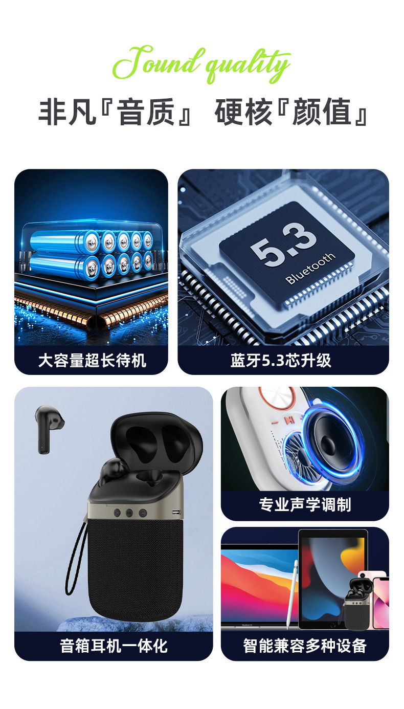 Два в одном наушники динамик Huaqiang North шумоподавление длинные Bluetooth гарнитуры TWS настоящие стереоскопические беспроводные наушники