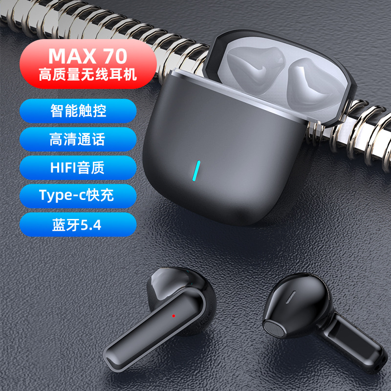 Bluetooth earphones MAX70 intelligent fingerprint touch wireless earphones high quality outdoor travel noise cancelling earphones wholesale