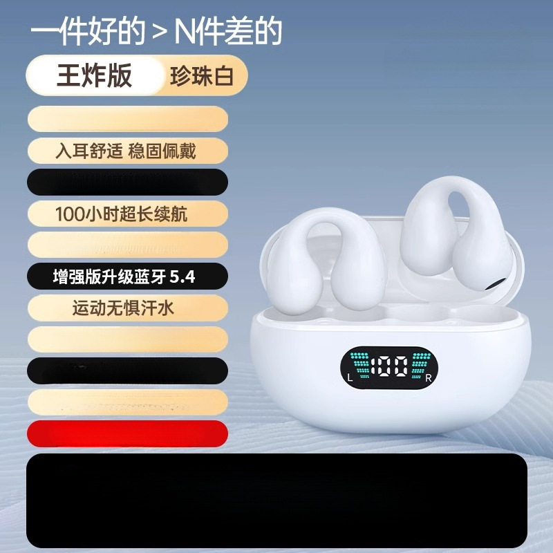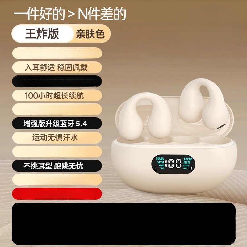 2025 new noise cancelling clip on ear bone conduction non in ear Bluetooth earphones with original wireless, ultra long battery life and high battery capacity