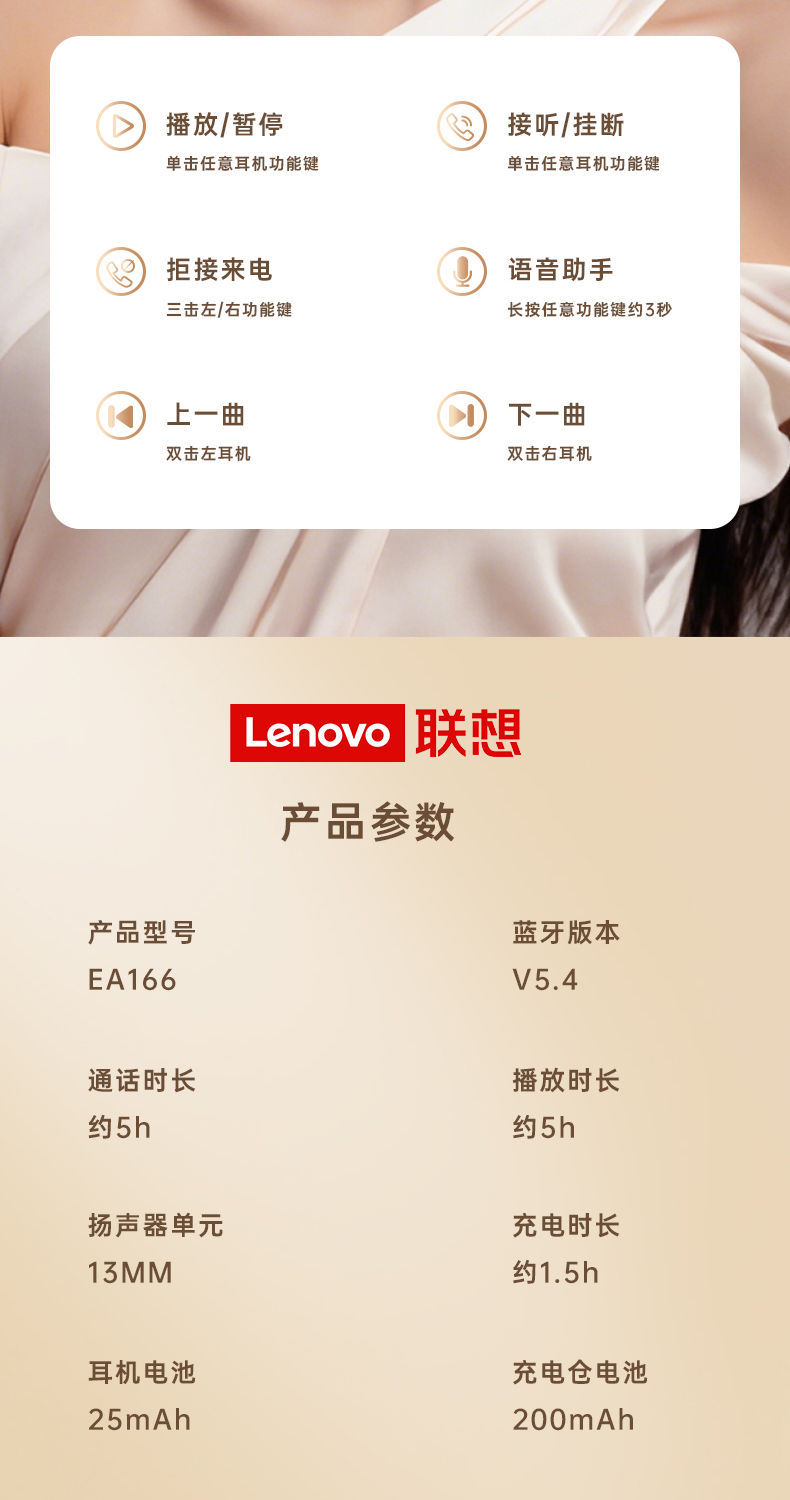 Lenovo/Lenovo EA166 New High Appearance and Good Sound Quality Gaming Wireless Gaming In Ear Bluetooth Earphones