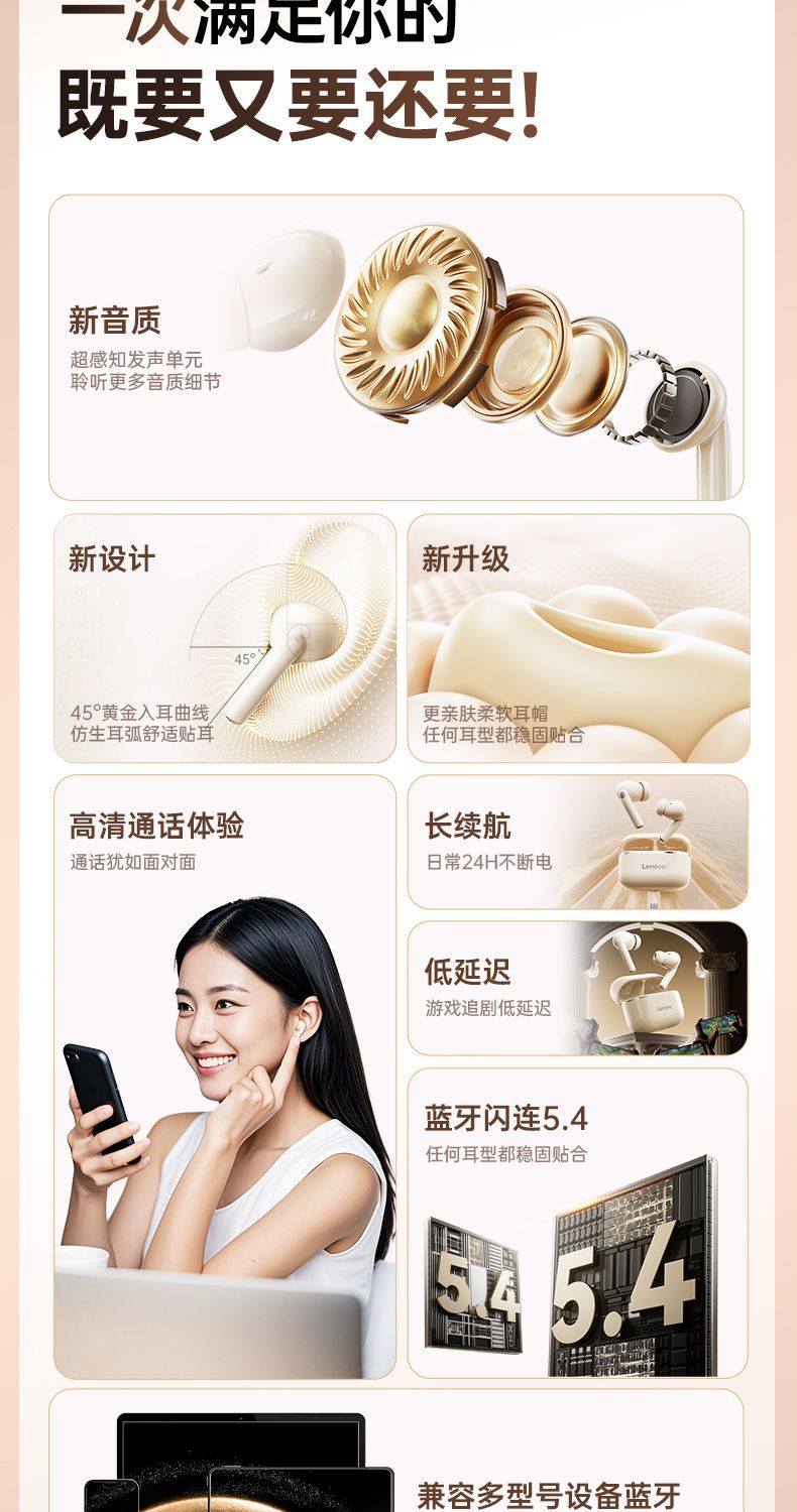 Lenovo/Lenovo EA230 Bluetooth Earphones 2025 New In Ear Wireless Noise Reduction High Sound Quality for Men and Women