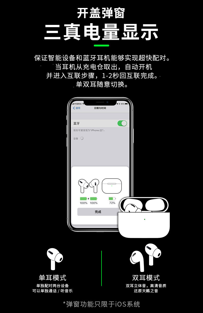 Huaqiang North Jerry is suitable for Apple wireless Bluetooth earphones TWS 245 full function noise reduction 6th generation Typec