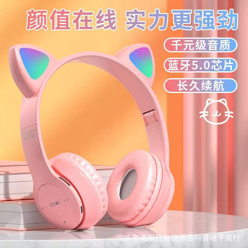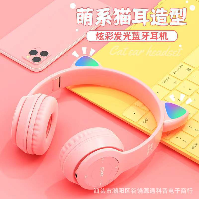 Трансграничные кошачьи уши P47M Bluetooth гарнитуры светящиеся слайды тяжелые басовые беспроводные наушники
