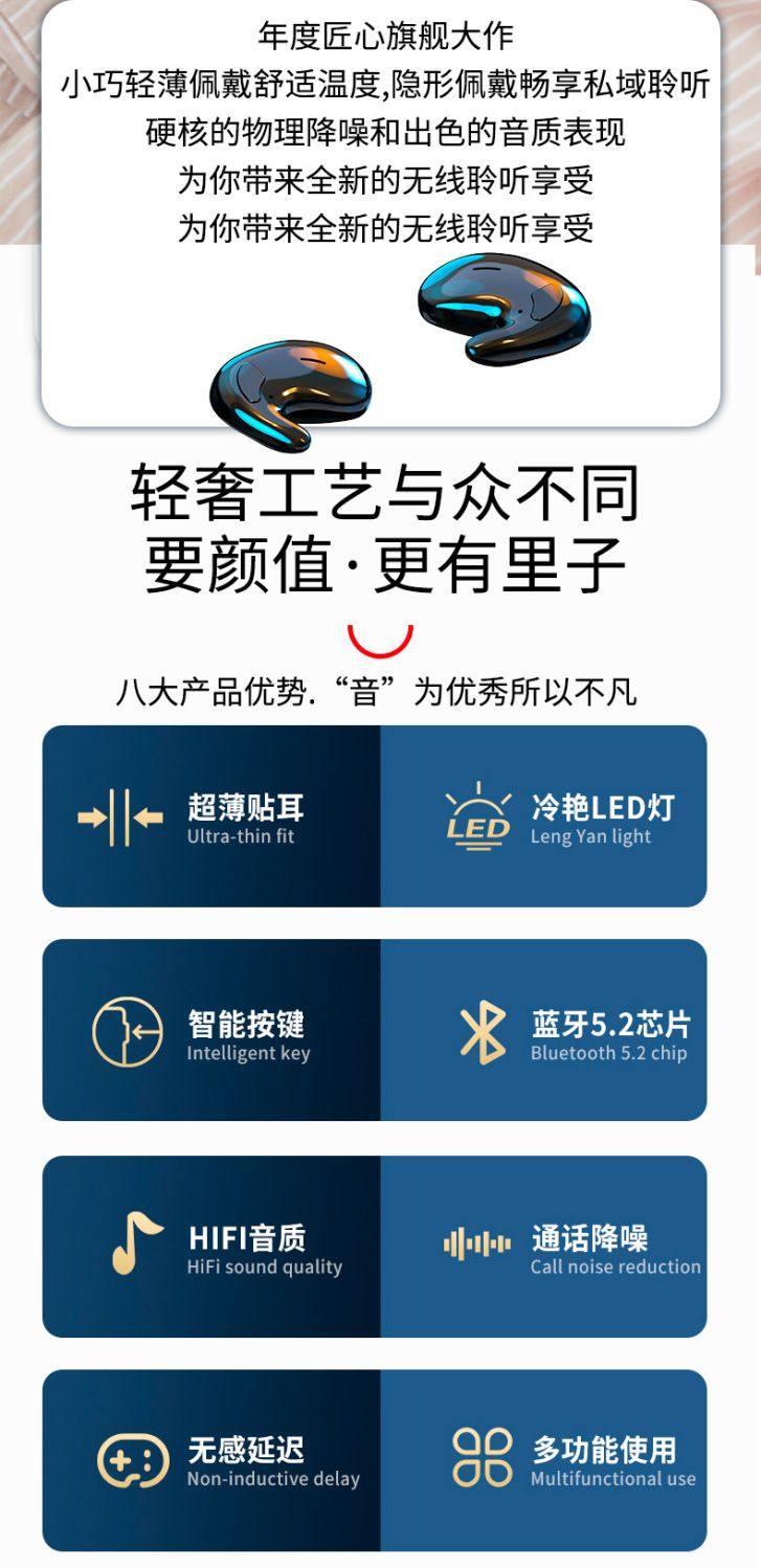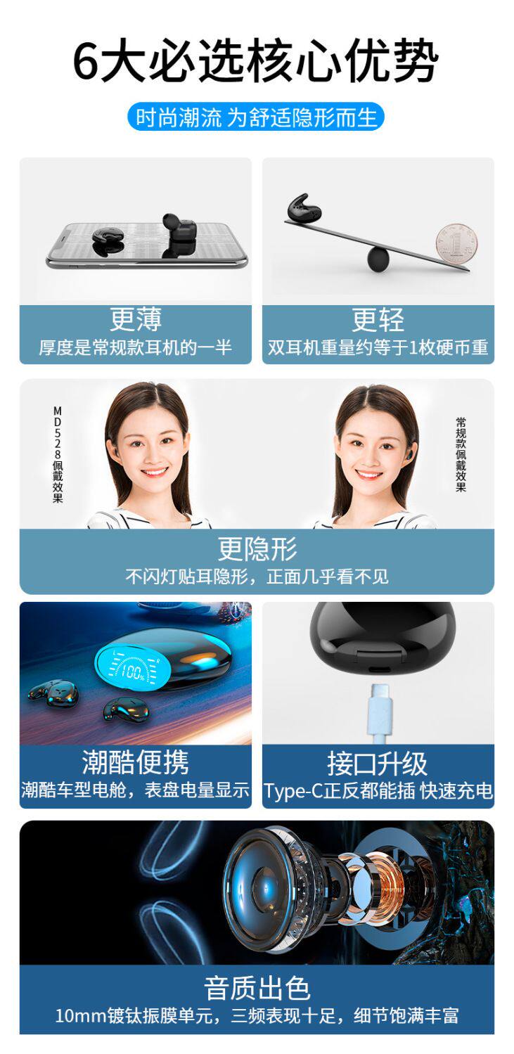 Беспроводные наушники Bluetooth с затычками для ушей Berlin не спят 2024 Новый ультратонкий наушник невидимый шумоподавление