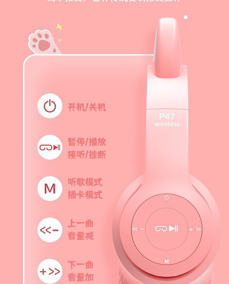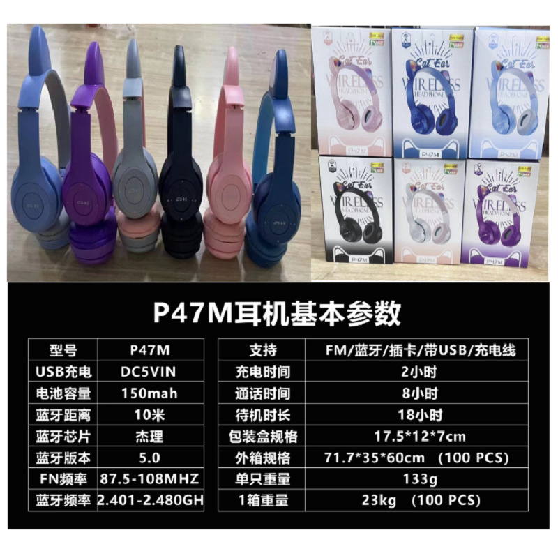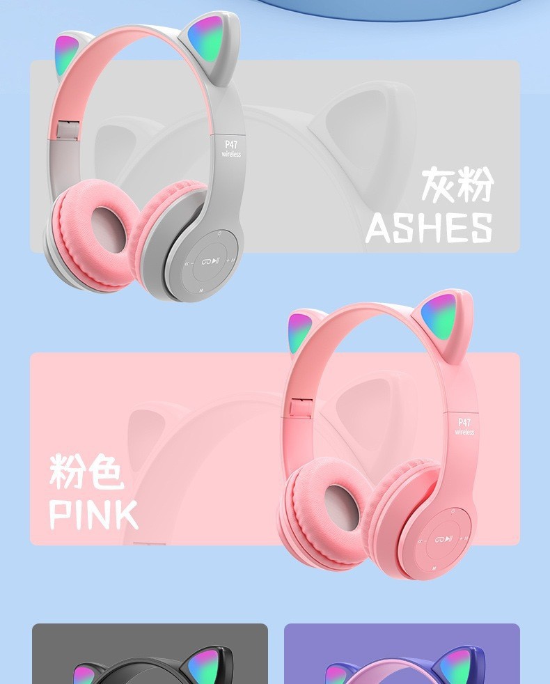 Новый трансграничный P47M кошачьи уши лысые наушники Bluetooth мультяшные наушники Студенческие беспроводные наушники завод