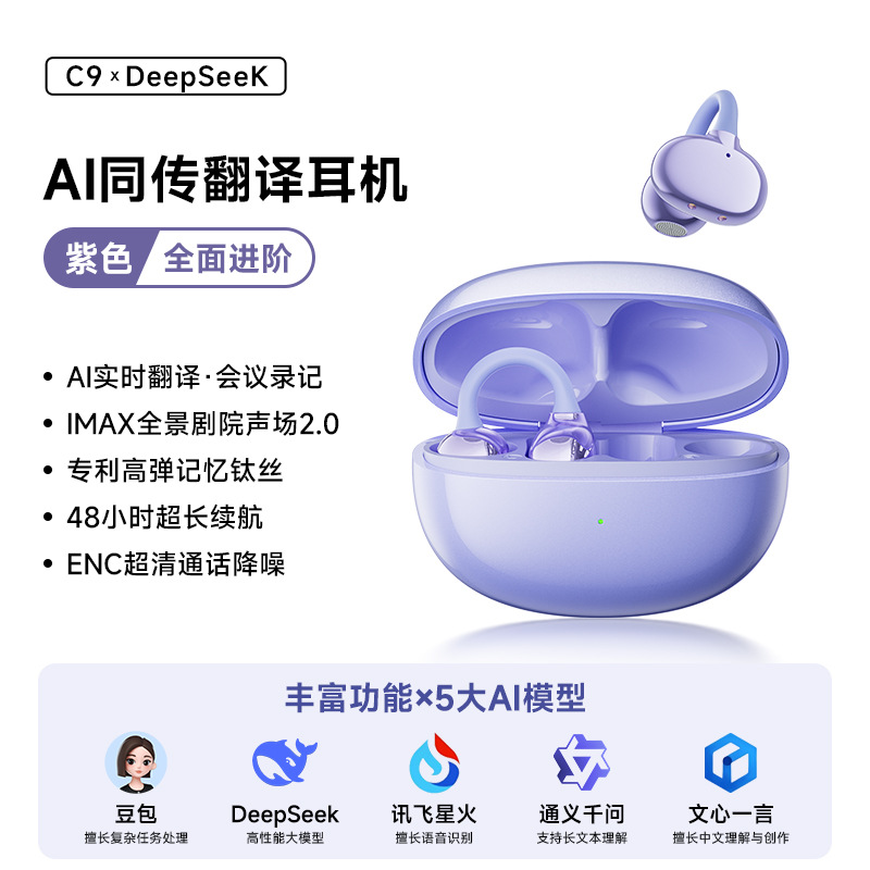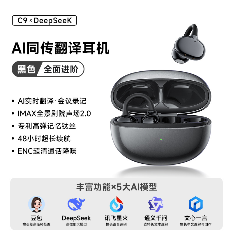 Беспроводной Bluetooth C9AI Перевод наушников Bluetooth с зажимом для ушей Беспроводная открытая спортивная музыка Наушники