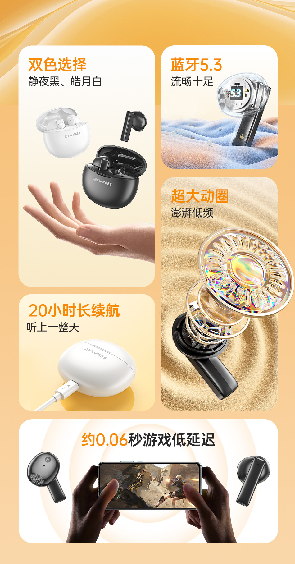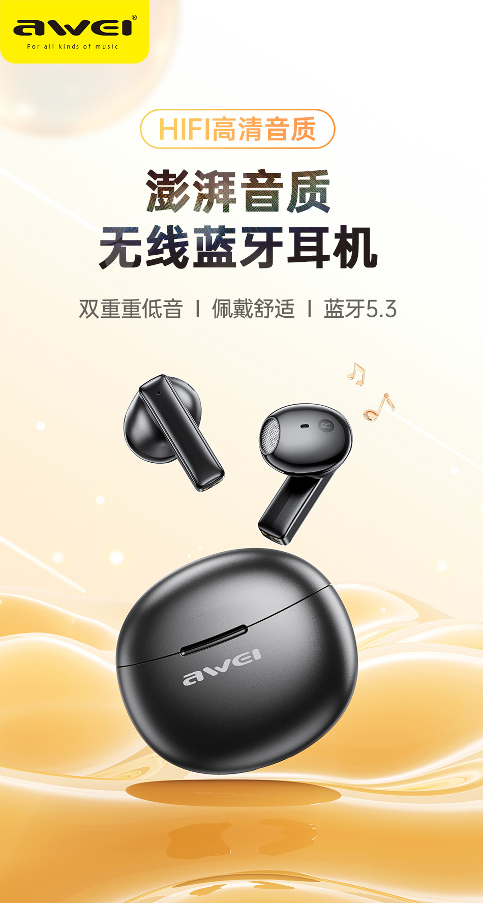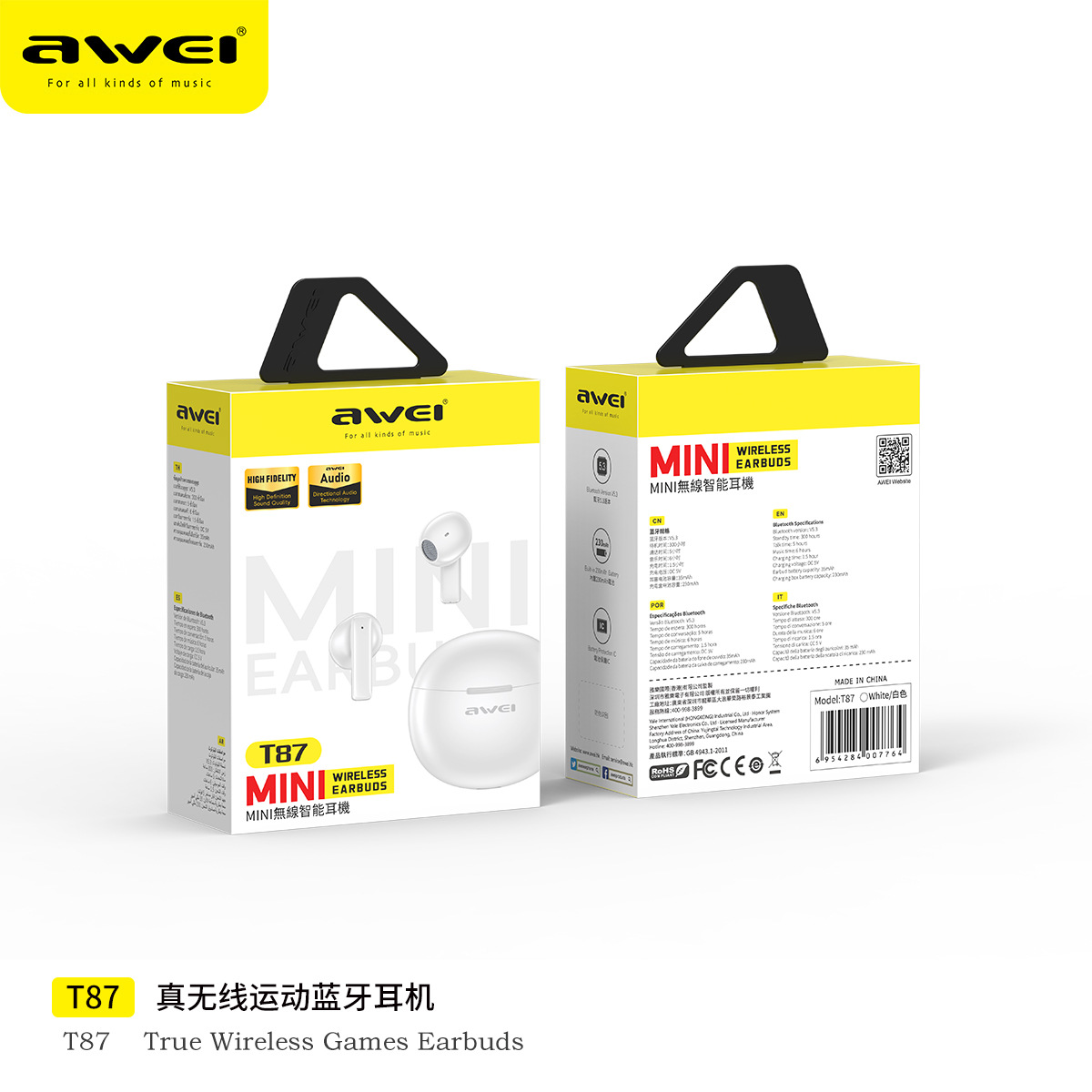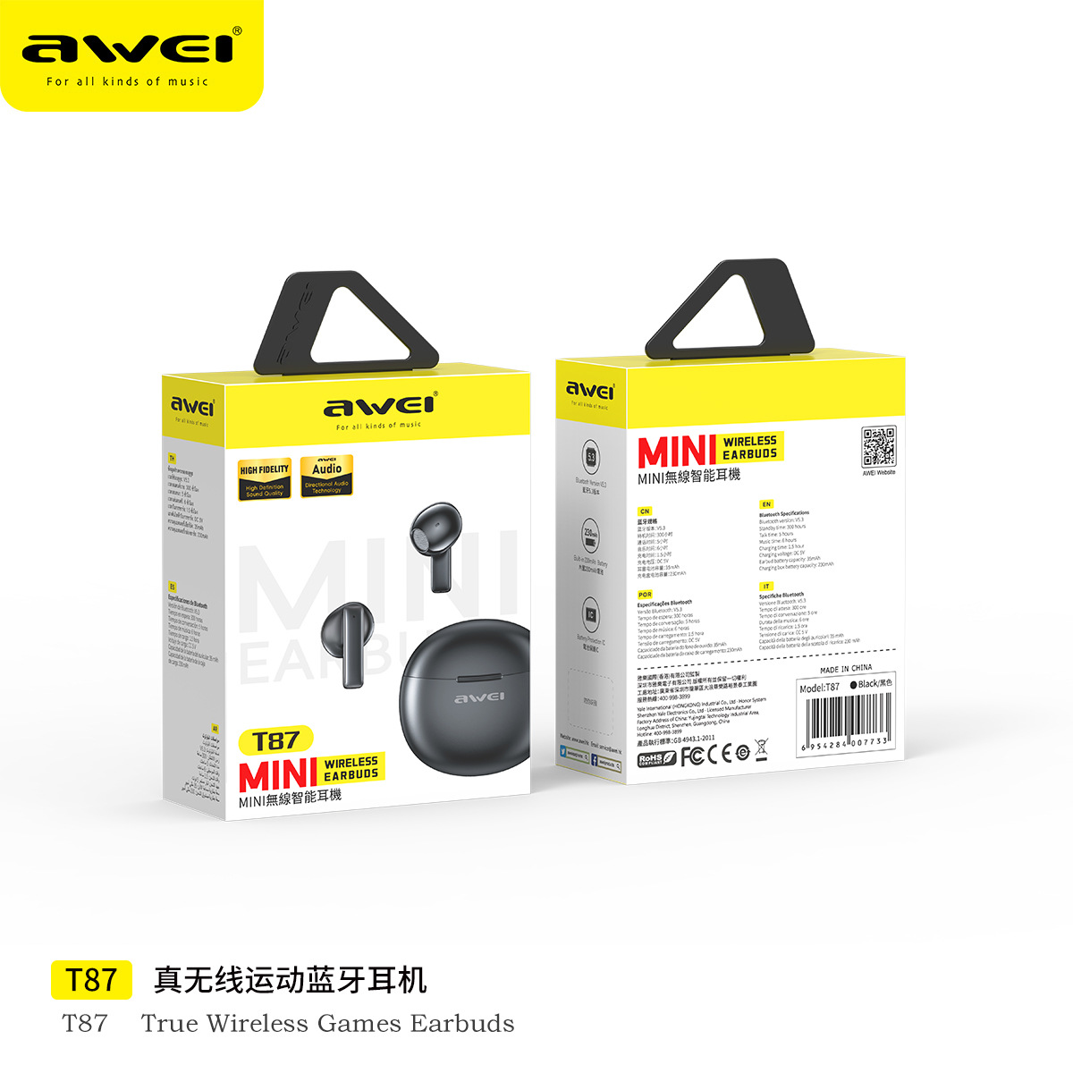 Awei Беспроводные наушники Bluetooth View T87, полунаушники, большой акселератор, двойной вес, бас, HD, наушники.