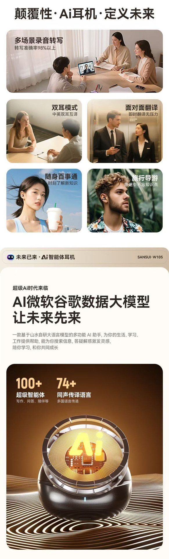 Горный Bluetooth наушники наушники наушники наушники наушники наушники AI умный перевод W105 Новый открытый антишумный спорт