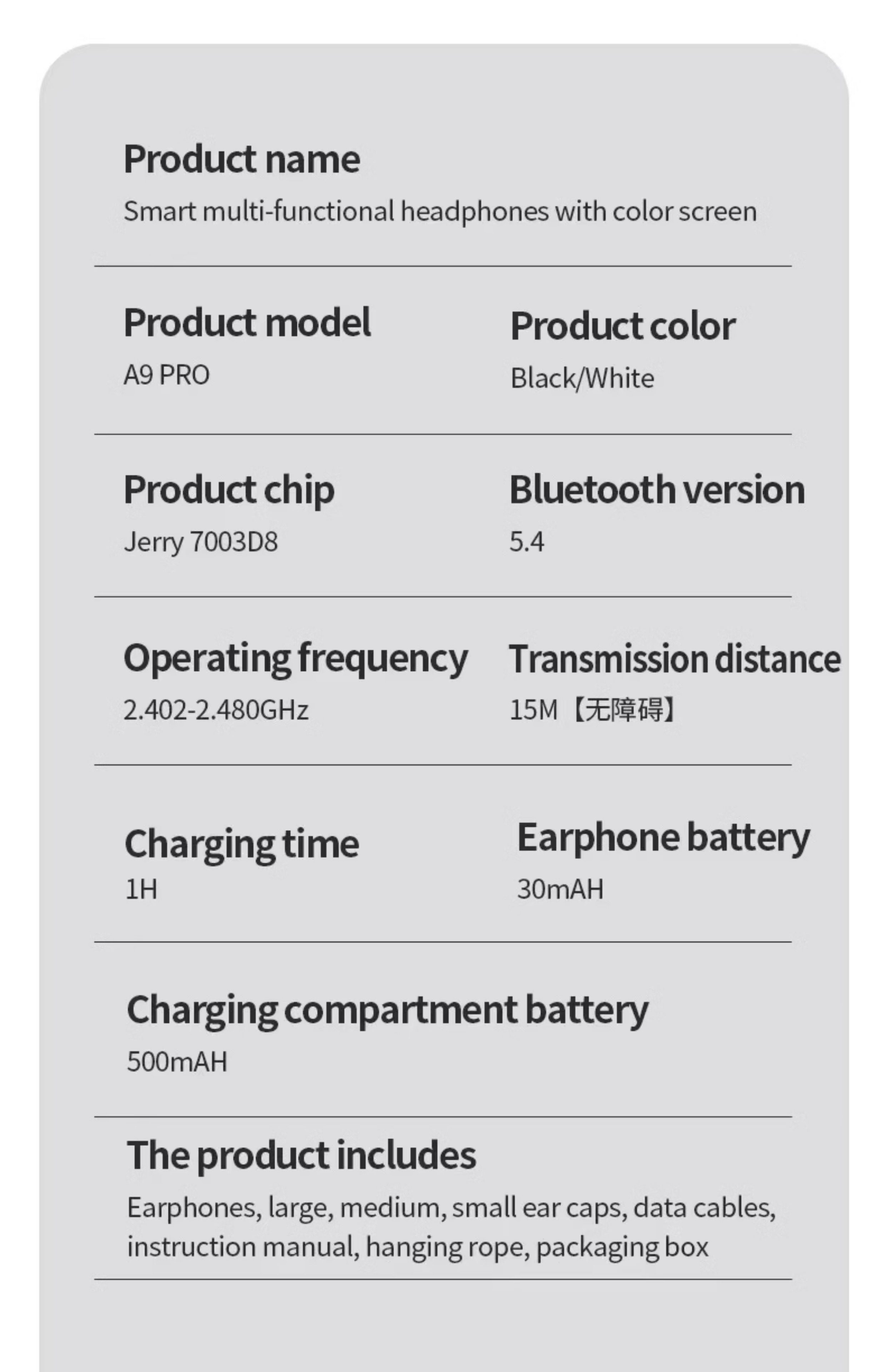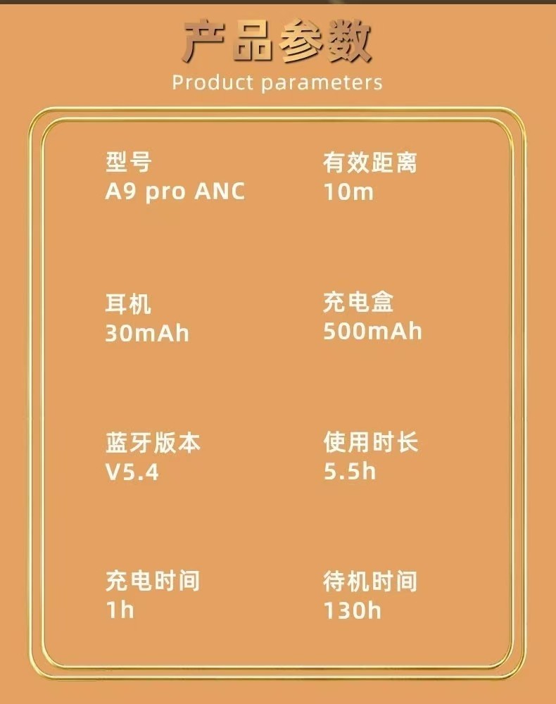 Трансграничное сенсорное управление экраном A9PRO показывает беспроводные наушники Bluetooth TWS с полувходным ухом ANCENC