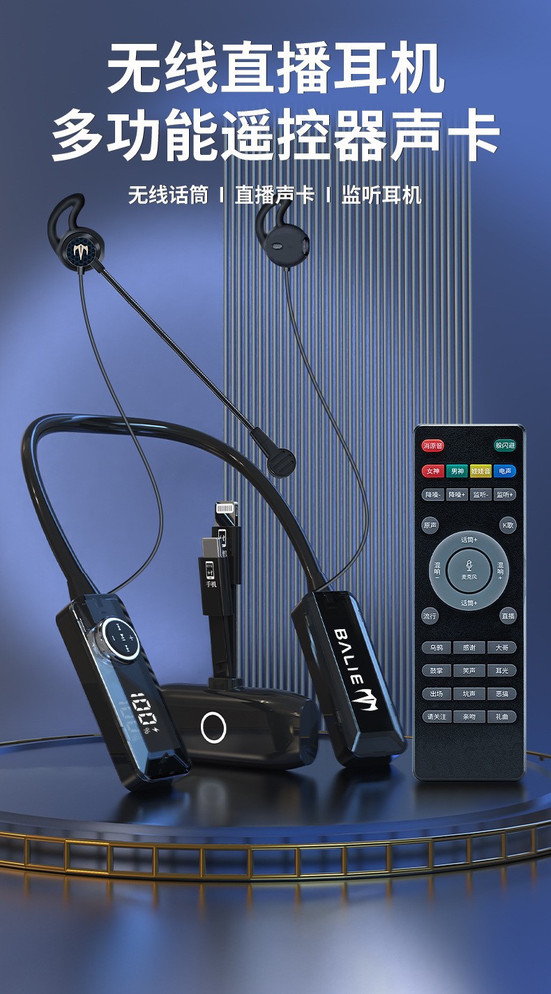 Звуковая карта, наушники, полностью беспроводной микрофон, длинный набор микрофонов, с ушами, прослушивание стерео