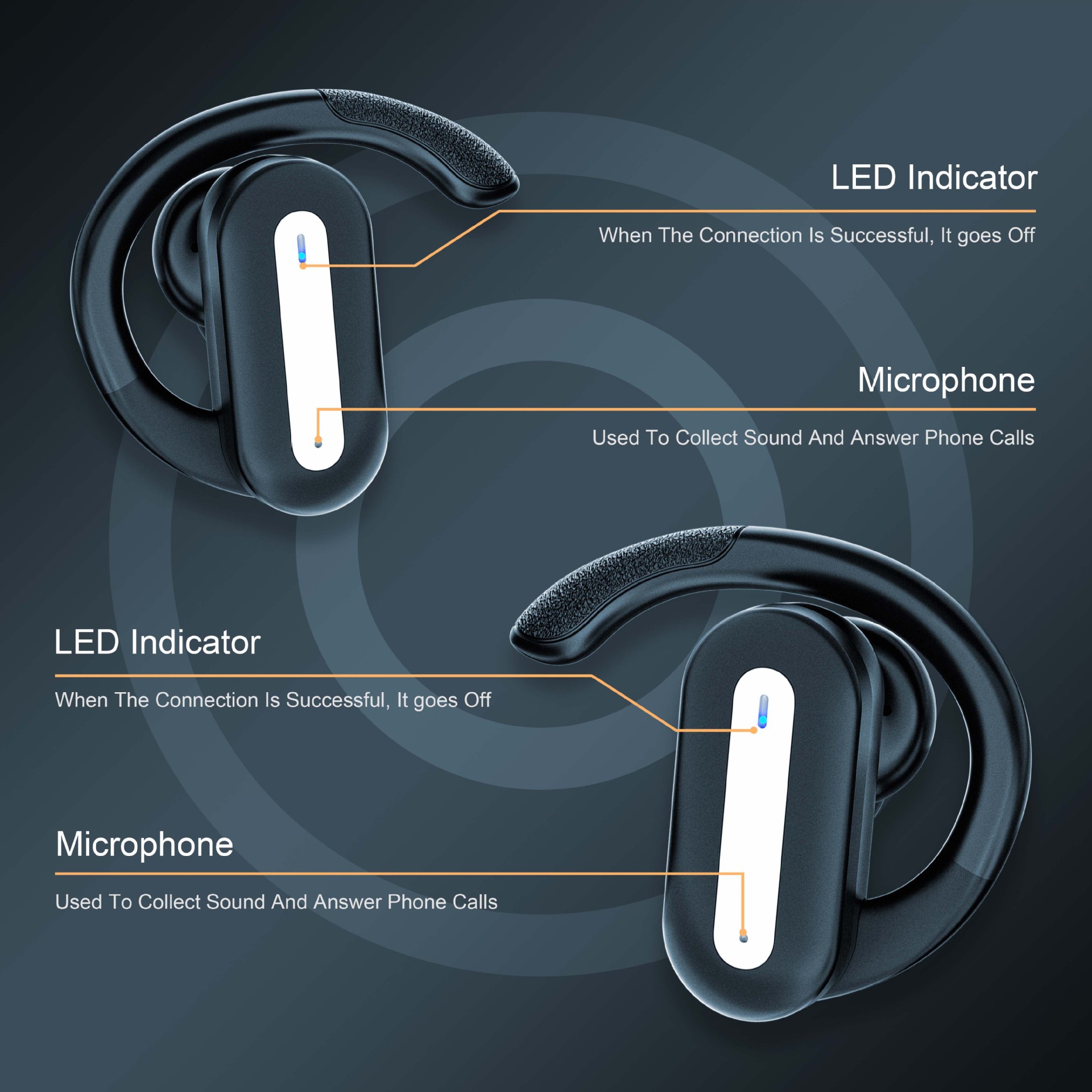 SP36 Наушники Bluetooth 5.4 с подвесным ухом показывают движение цифрового шумоподавления ENC