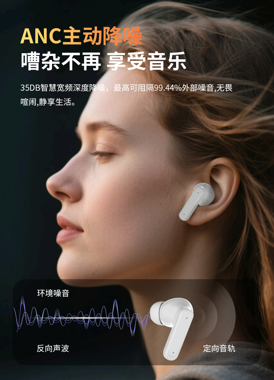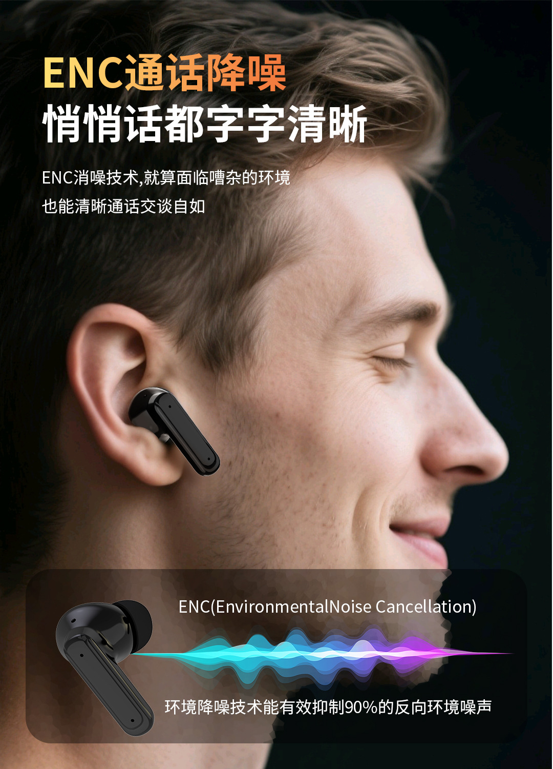 Беспроводные наушники TWS с длинным сроком службы, двойным снижением шума, высоким качеством звука, высокой четкостью