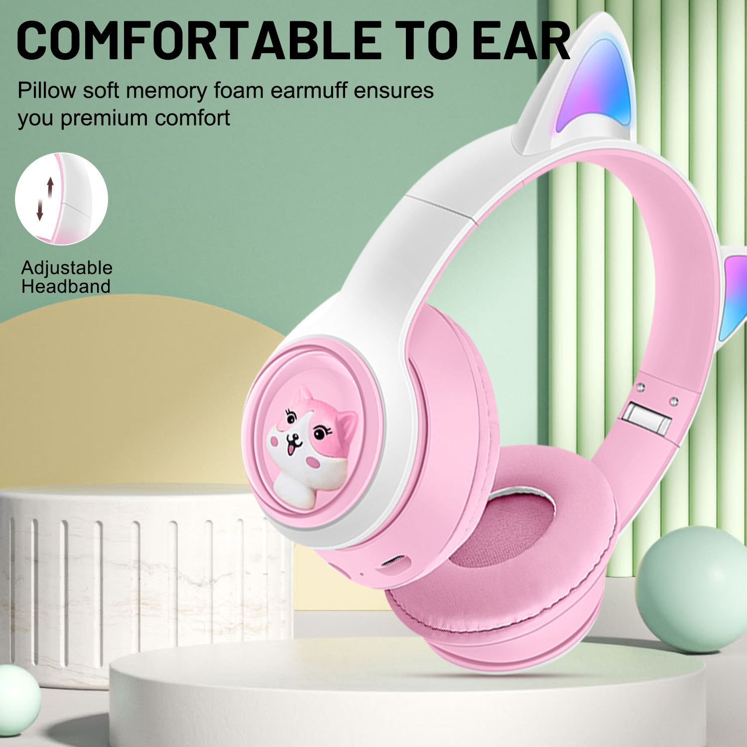 AKZ - 07 Новые мультики Симпатичные Bluetooth гарнитуры RGB Светящиеся кошачьи уши тяжелые басовые наушники