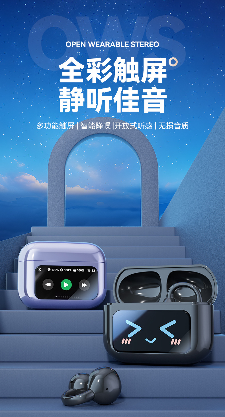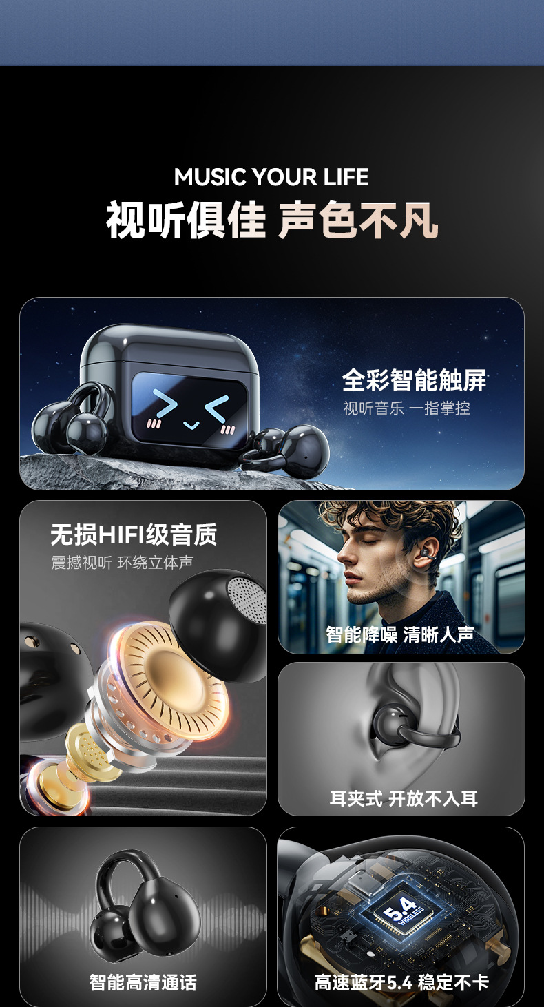 2025 Новые наушники Bluetooth беспроводной экран спортивный зажим M100 костная проводимость шумоподавление наушники длинный срок службы