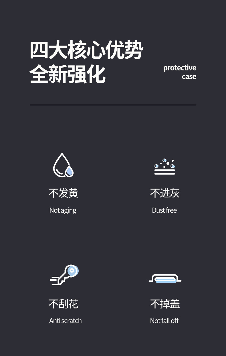 | 商品卖点 | 高通抗黄、透明防摔、全包、便携、小巧 |