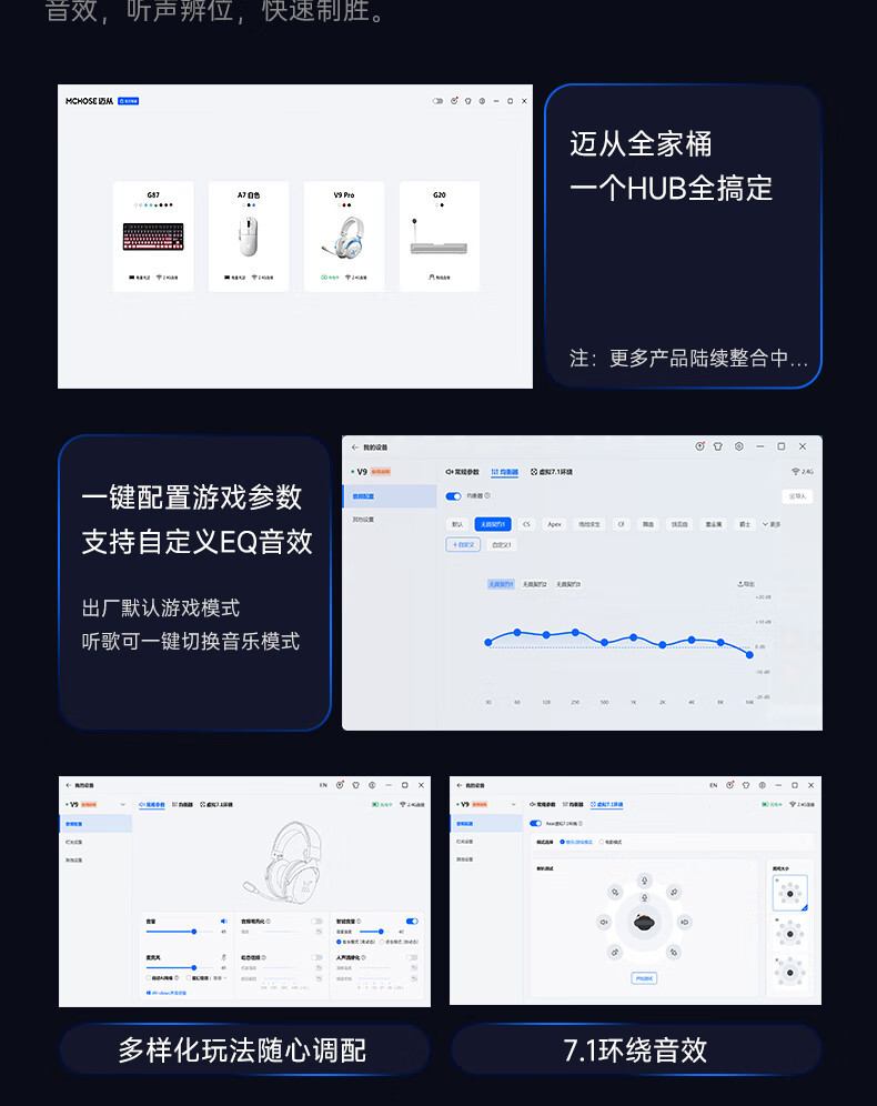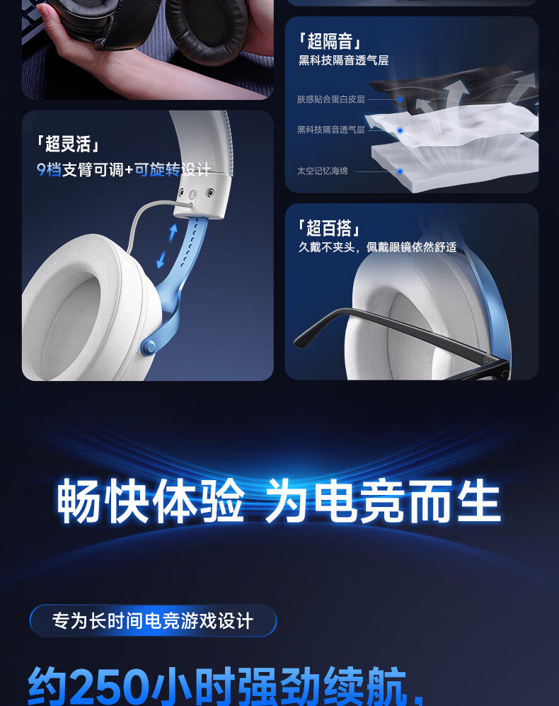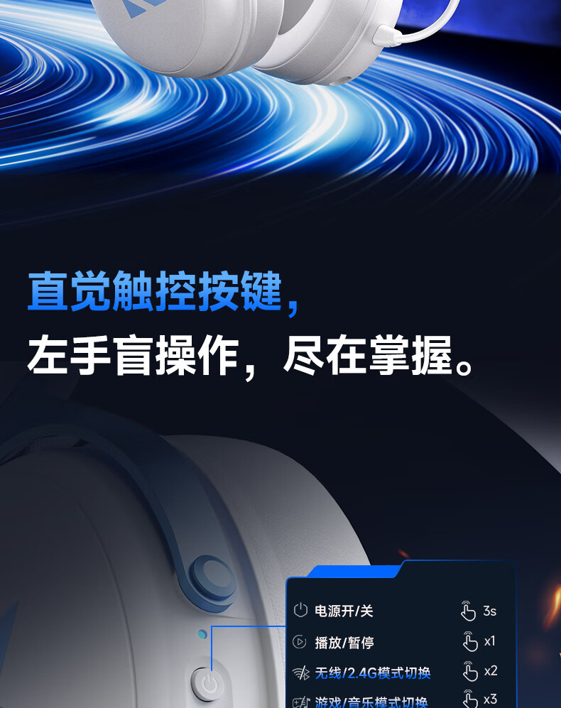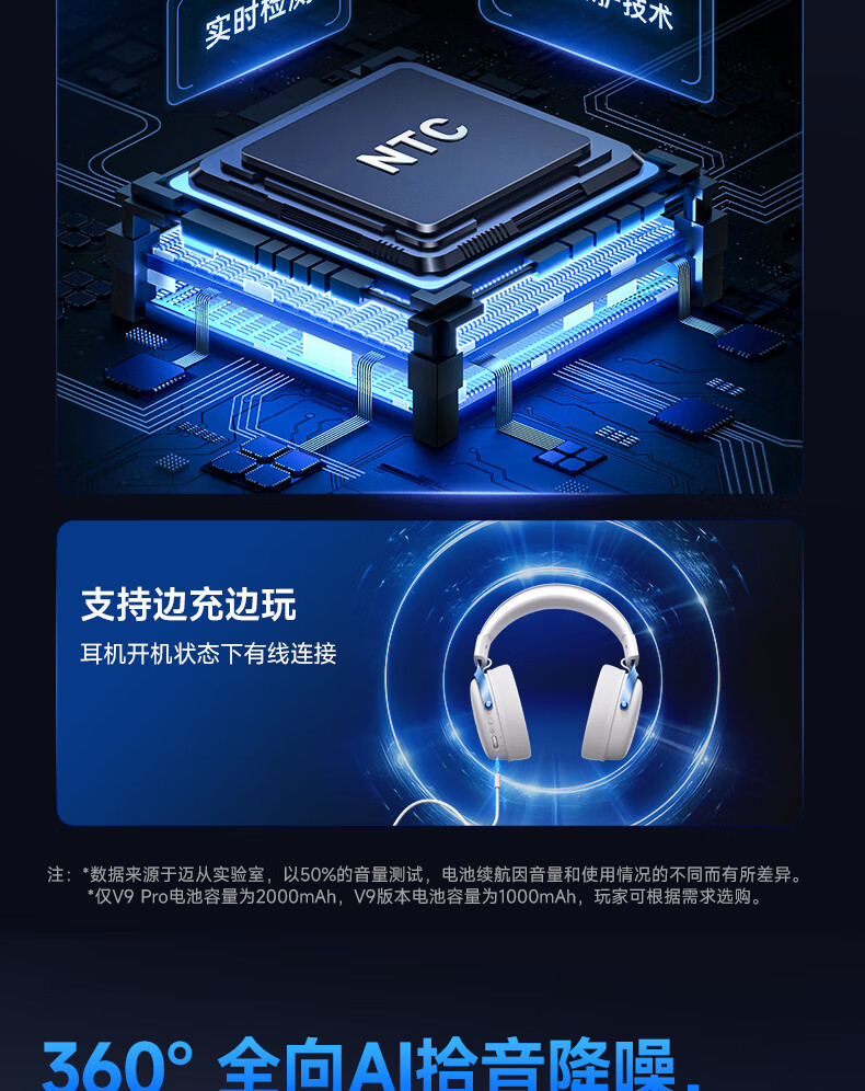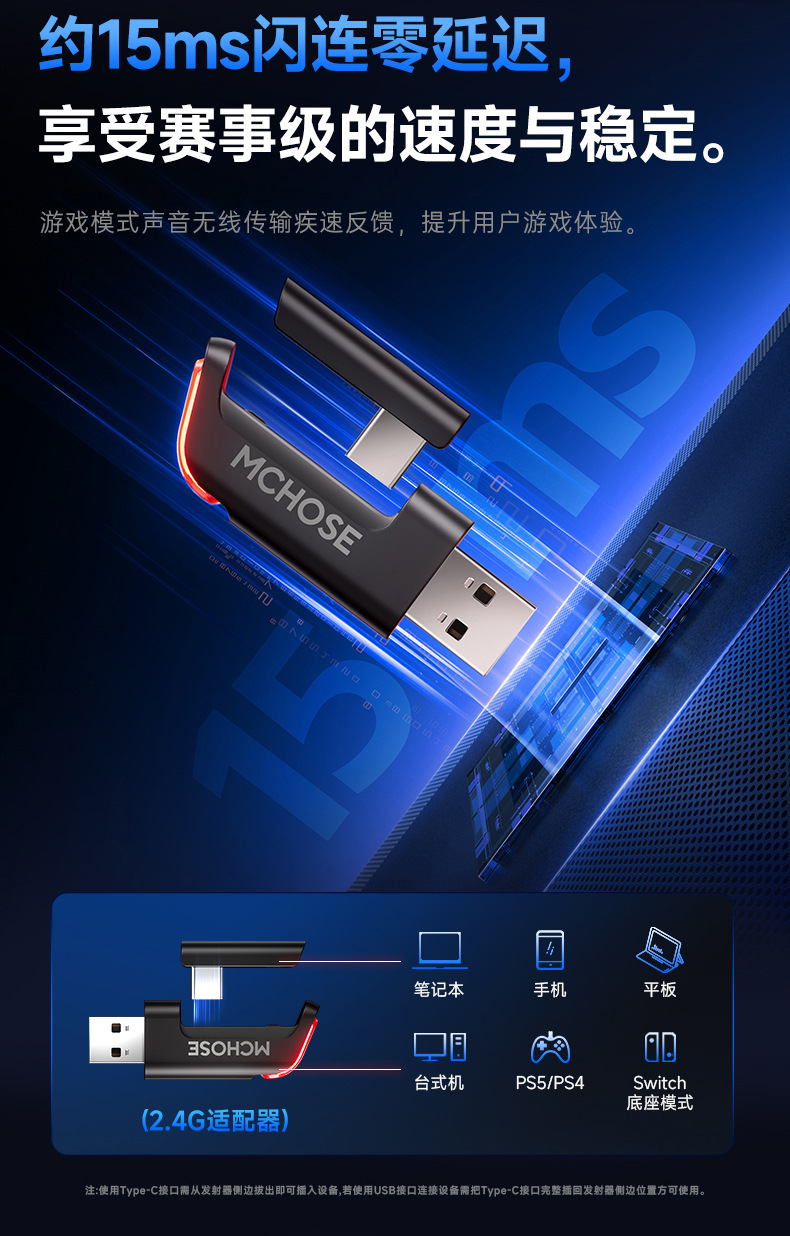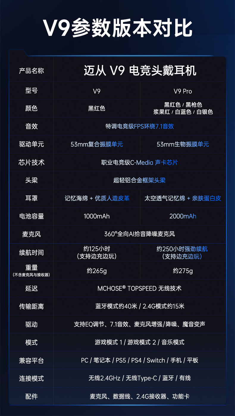 MCHOSE V9 Gaming Earphones, Esports Earphones, Head mounted Computer, Bluetooth/2.4G/Wired Earphones