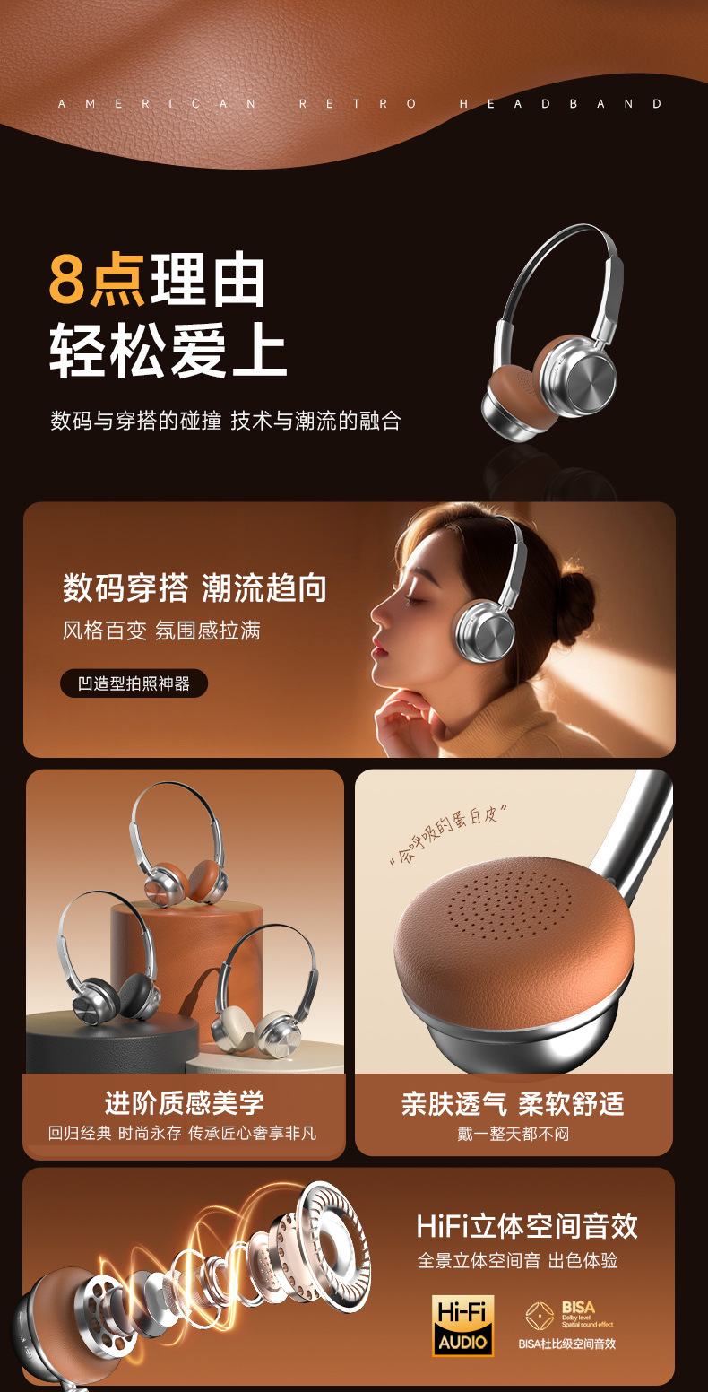 Трансграничные металлические спортивные американские ретро - головные беспроводные наушники Bluetooth для Apple Huawei Xiaomi VIVO