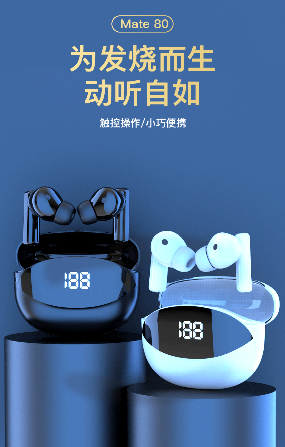 Беспроводные наушники Mate80 Bluetooth для снижения шума TWS Трансграничные движущиеся наушники F9 M10 A6S Bluetooth 5.3