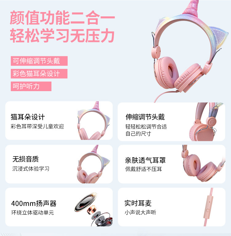 Детские наушники 201E Носители Bluetooth Наушники Милые кошки Уши Беспроводные разъемы Игры Наушники Оптовые наушники